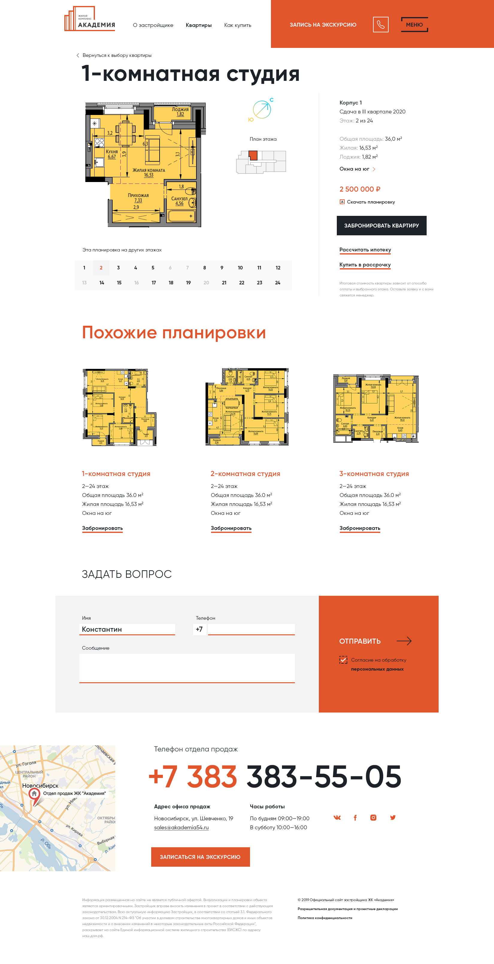 Prices and apartment availability are updated automatically from 1C. Depending on the marketing strategy, prices can be hidden.