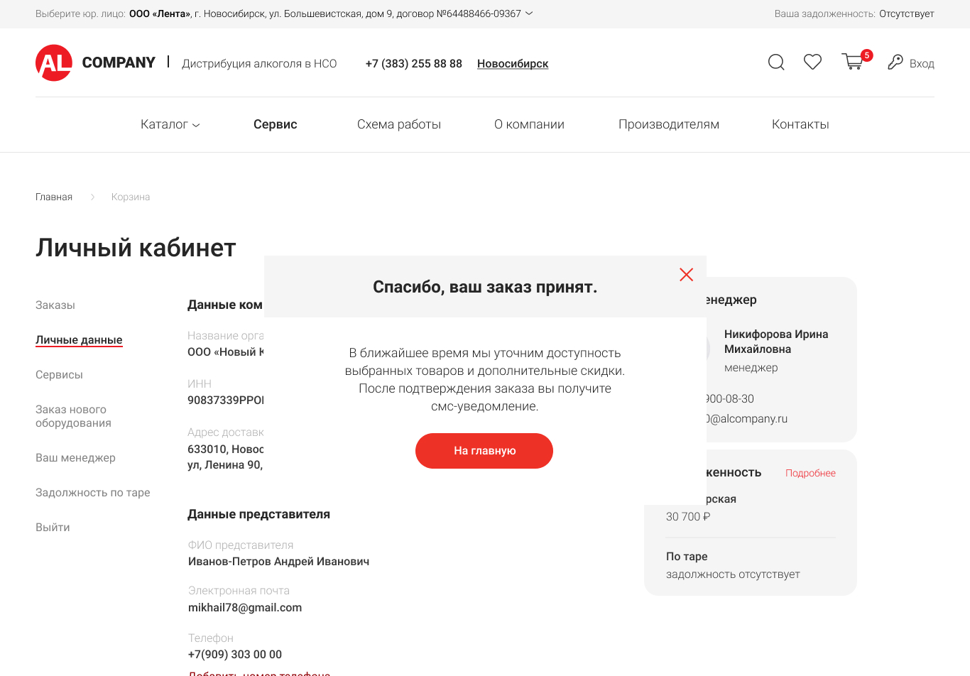 First, we launched the MVP version with a product catalog synchronized with 1C. In this version, there was no user dashboard, as after lengthy discussions, we decided to save this feature for later.