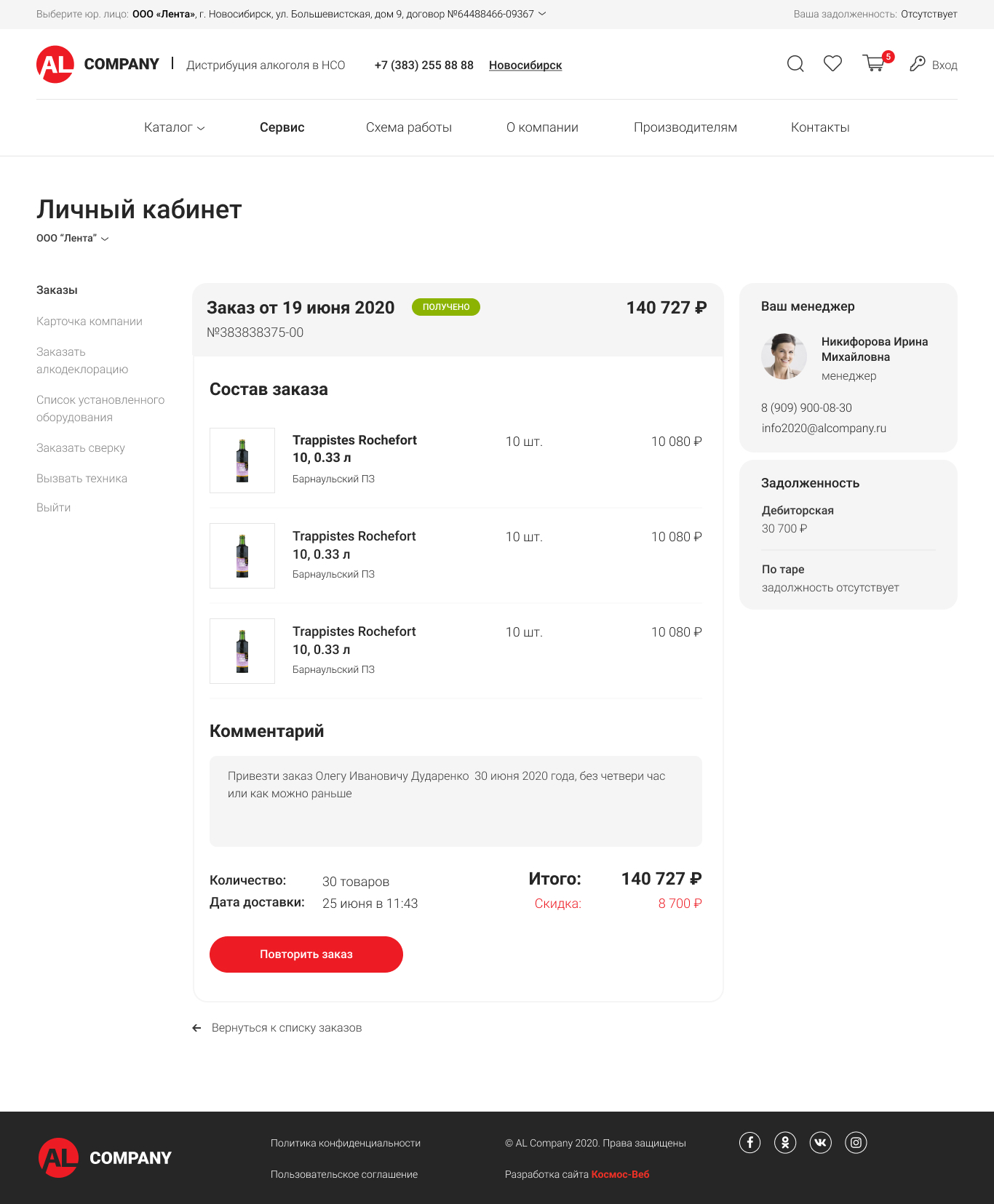 - We implemented custom integration with 1C. The website exchanges documents and product, order, price, and delivery data with the technology platform.