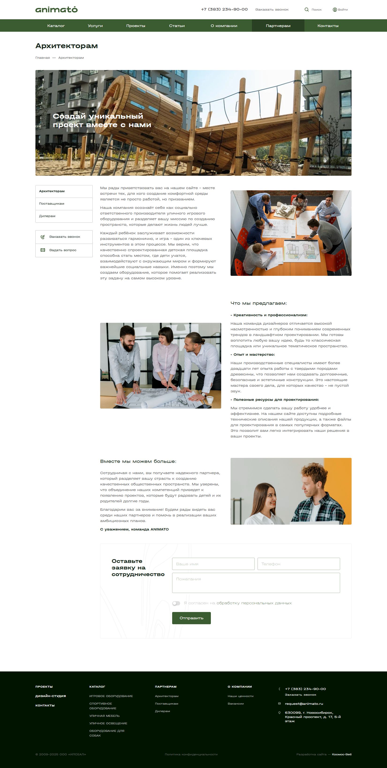 We worked on Telegram, VKontakte, and Dzen. We also published photos of completed playgrounds and visualizations of models on Pinterest.