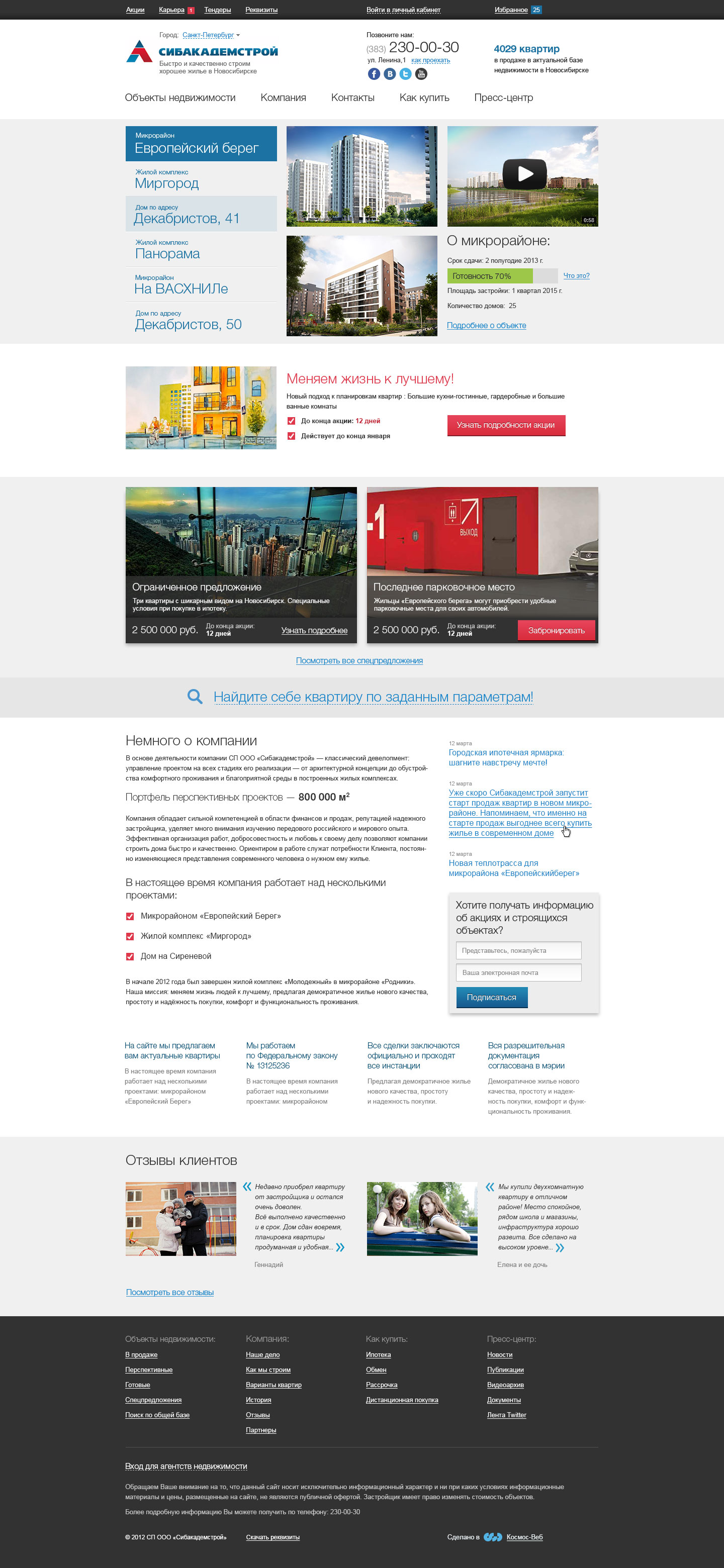 We created a website for the developer Sibakademstroy with a focus on apartment selection in the residential complex ’Evropeyskiy Bereg’.