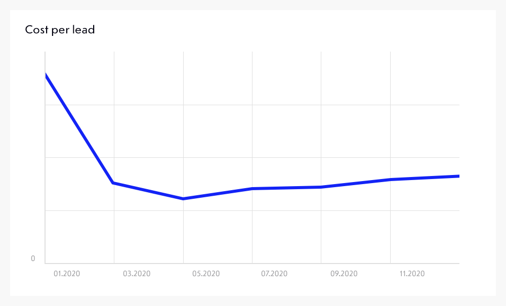 In the first month, we identified the most effective combinations of ads, landing pages, and audiences. Regular testing, bid adjustments, and work to optimize the advertising campaign allowed us to significantly improve the results in the next period: