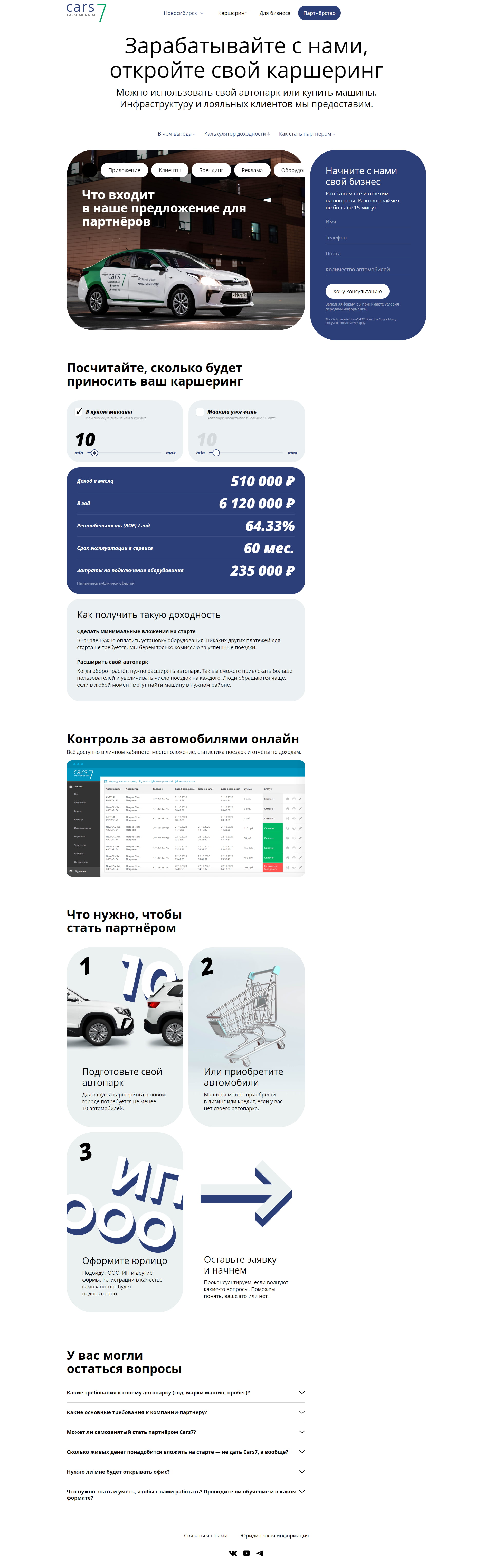 The calculator takes into account the partner’s existing fleet and the possibility of buying new cars.