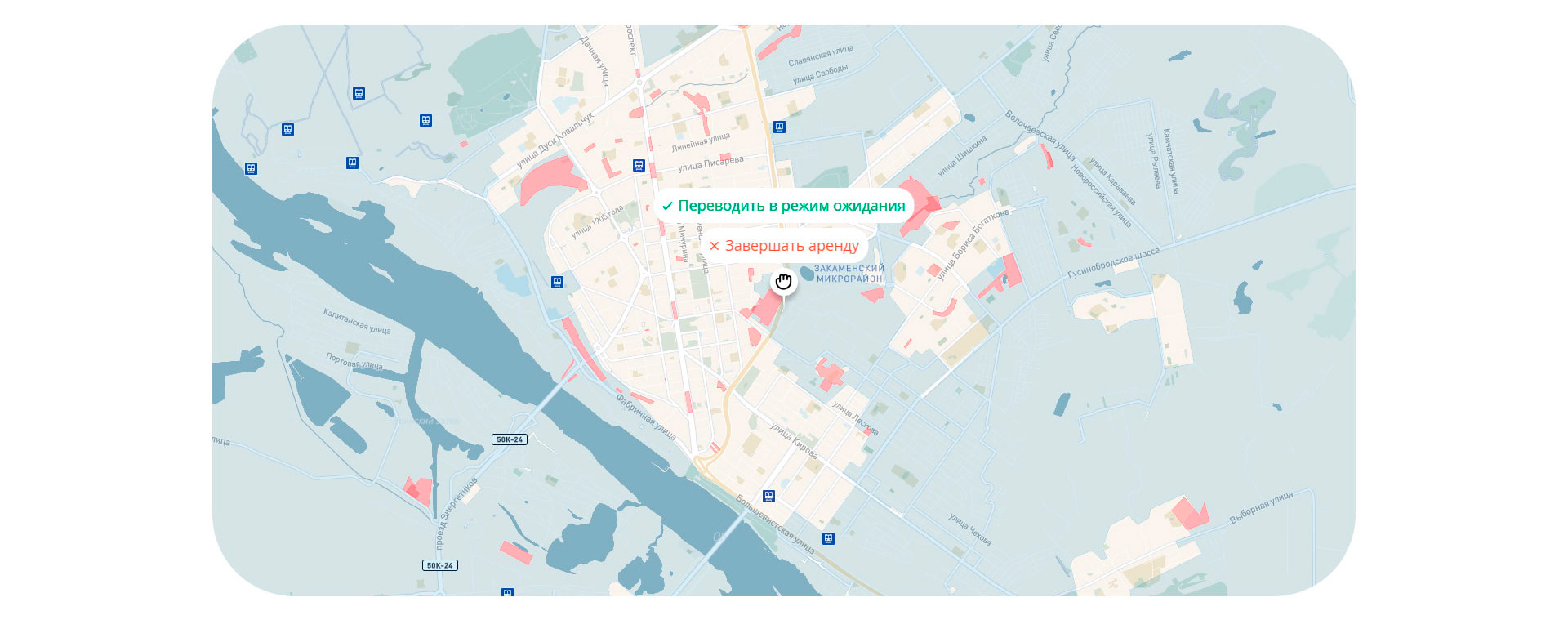 On the map, the user can see the possibility of completing the lease or switching to standby mode.