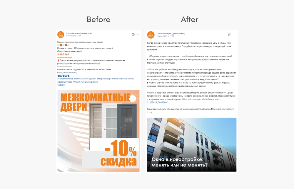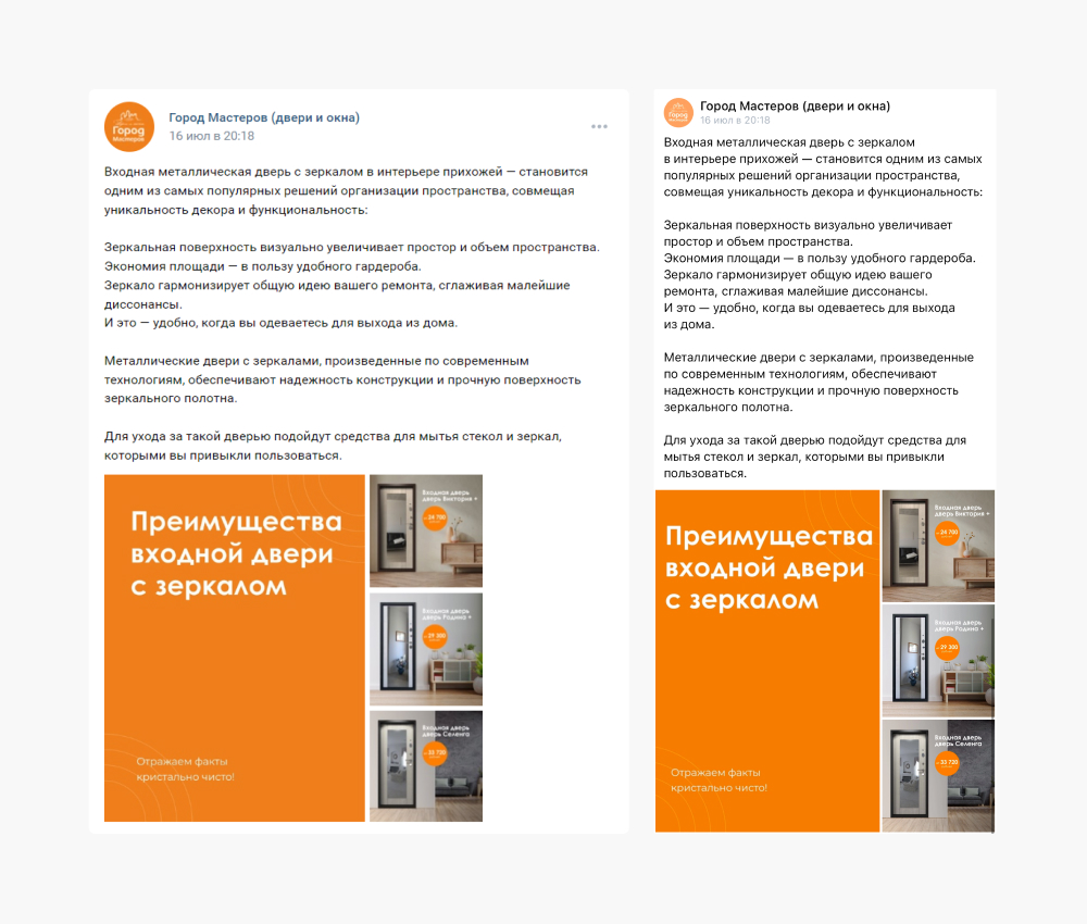Most VKontakte users log into the social network from a PC, unlike Instagram users. That’s why we changed the image formats and adapted the content to the desktop version.