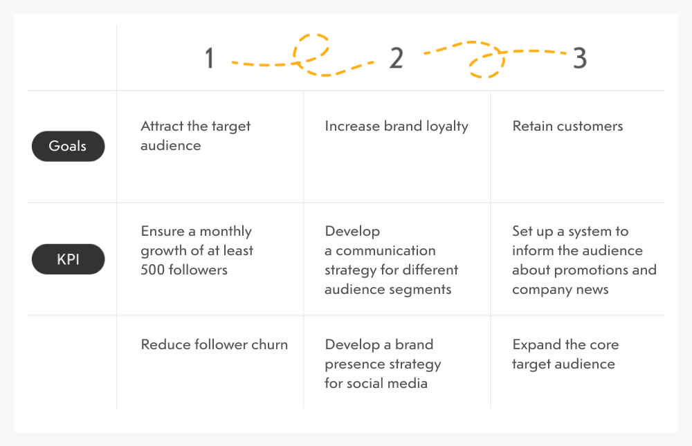 To solve the problems, we started working on an SMM strategy: we formulated the promotion goals and KPIs in detail.