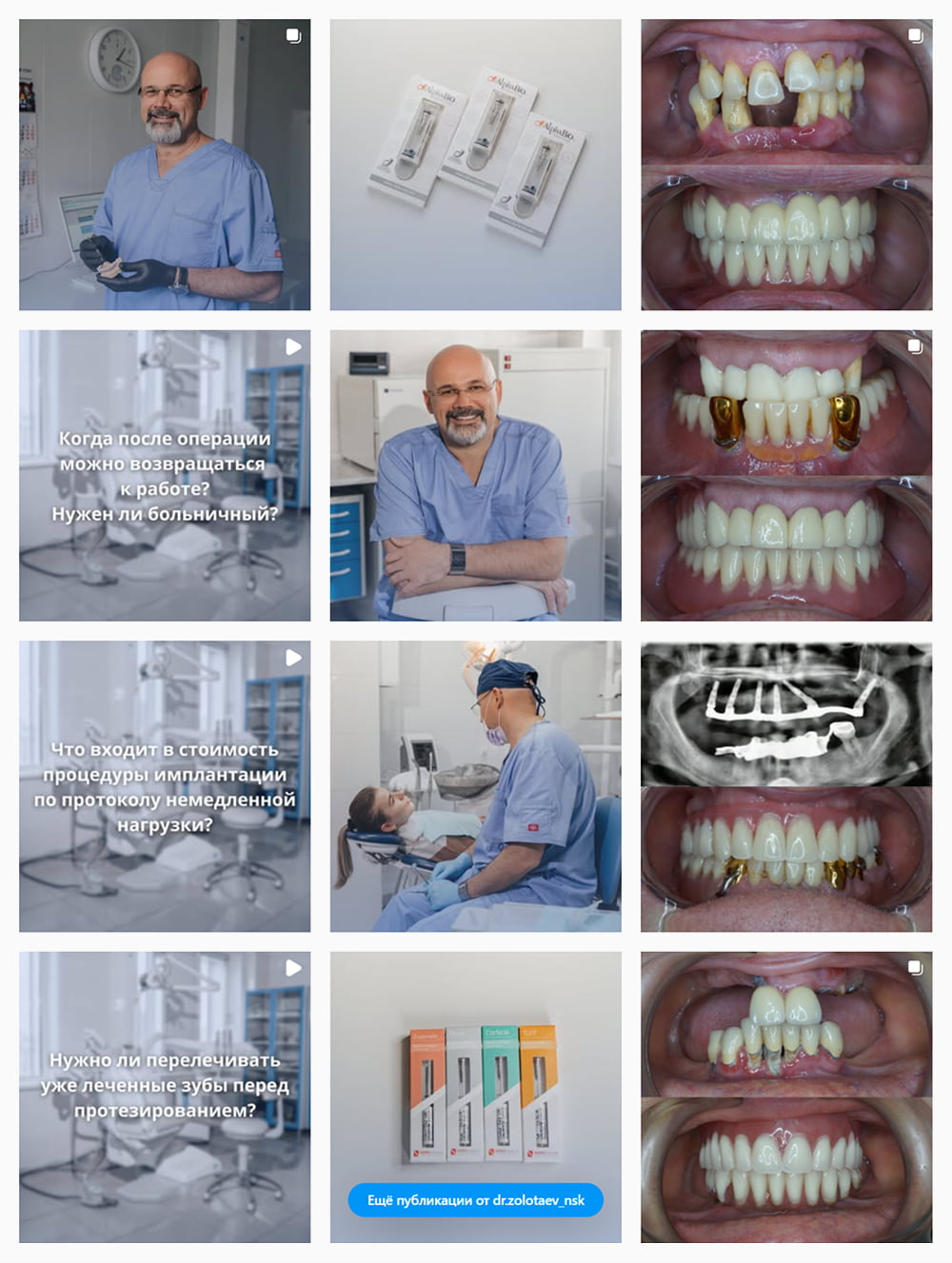 The main specialization of Dr. Zolotaev is full-mouth rehabilitation, the complete replacement of the dental arch. That’s why, for potential clients, photos of teeth and treatment results became a kind of therapy. People saw that the doctor could find an approach even in the most difficult cases. They realized that any 'Before' could be turned into an 'After' — and that they could smile again.