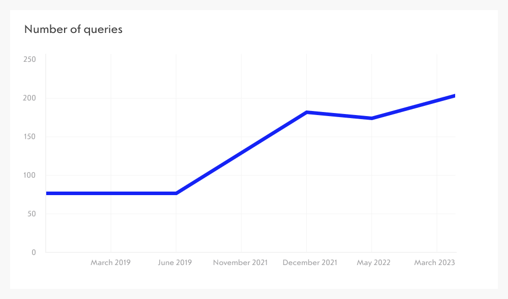 For 2023, the number of queries is 246 in each search engine, taking into account the freezing of some queries and the change in the semantic core.