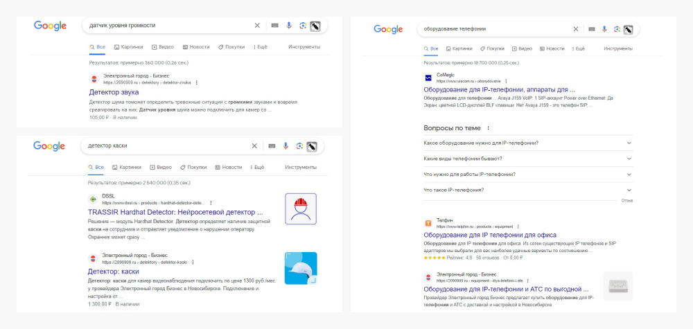 In 2021, we redistributed the products from the Devices page into new subsections based on the results of the analysis of semantics and competitors from the TOP 10.