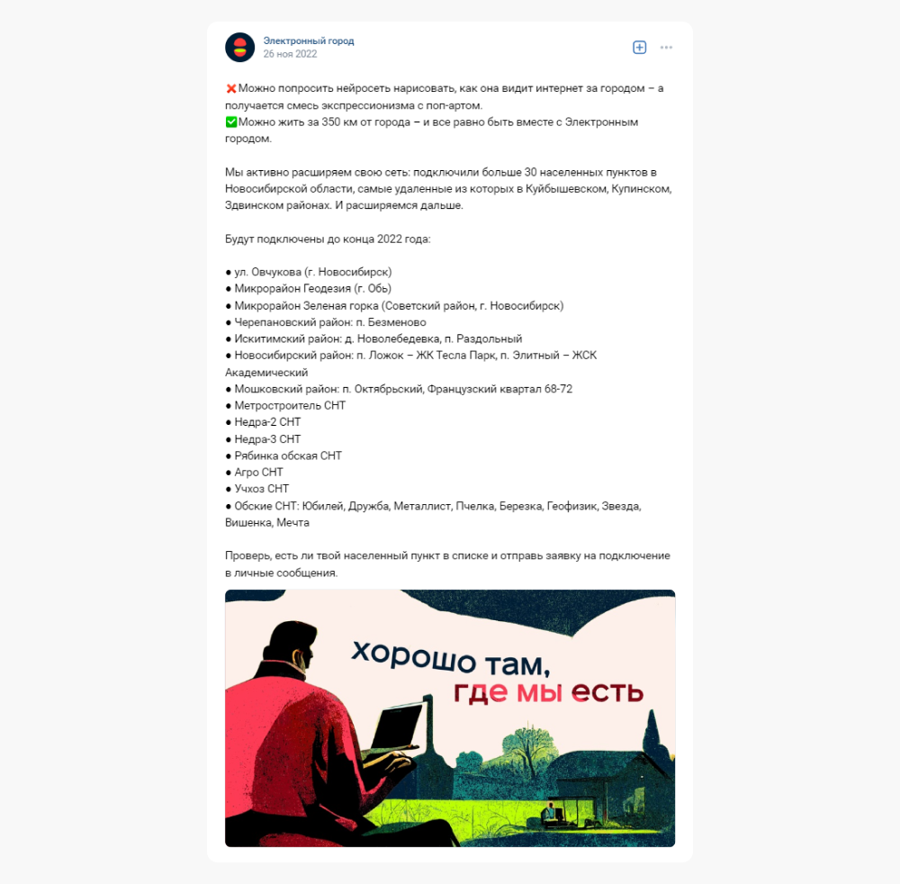 Electronic City is one of the largest providers in the Novosibirsk region of Russia. Our cooperation began in 2018, when a client contacted us for a website update.