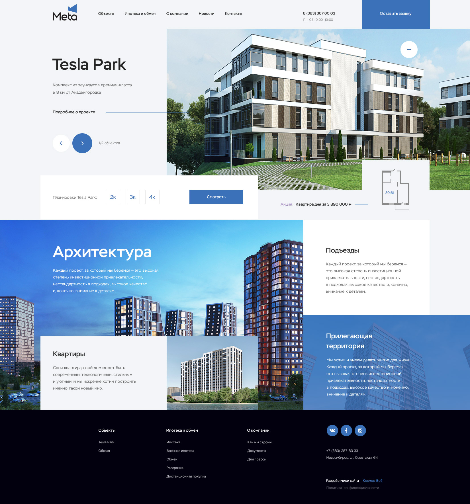 In parallel with setting the context, we made improvements to the site that were necessary to increase conversion. Purchase methods have appeared on the object pages and their own navigation has been introduced, an optional block of promotional offers has been added to the first screen, etc.