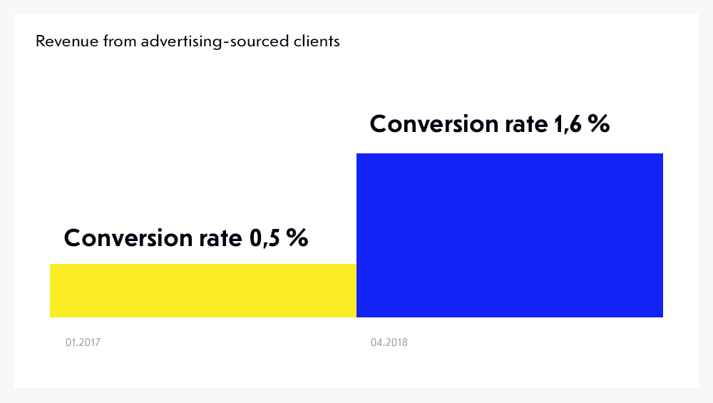 Only by increasing the conversion rate by 1%, we have tripled the volume of sales from advertising.
