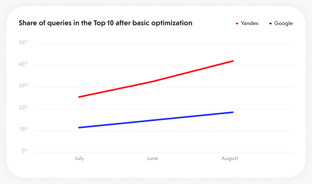In June 2023, Yunona approached us to carry out basic SEO optimization of the website.