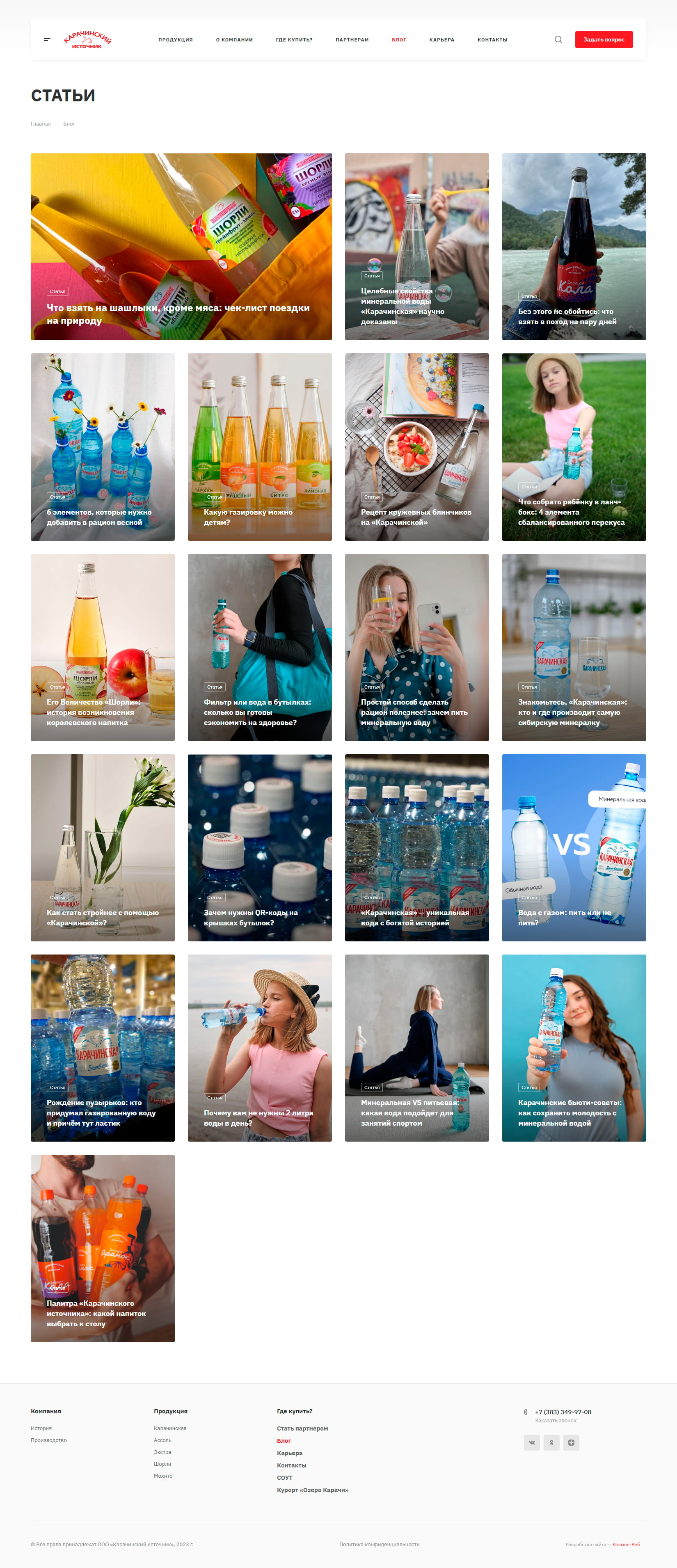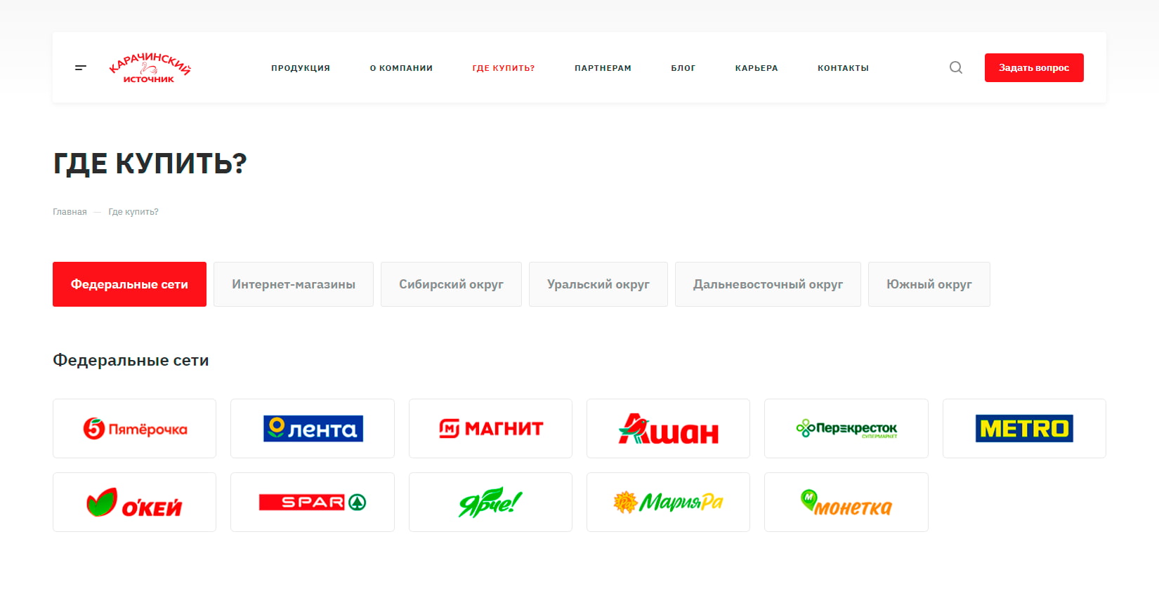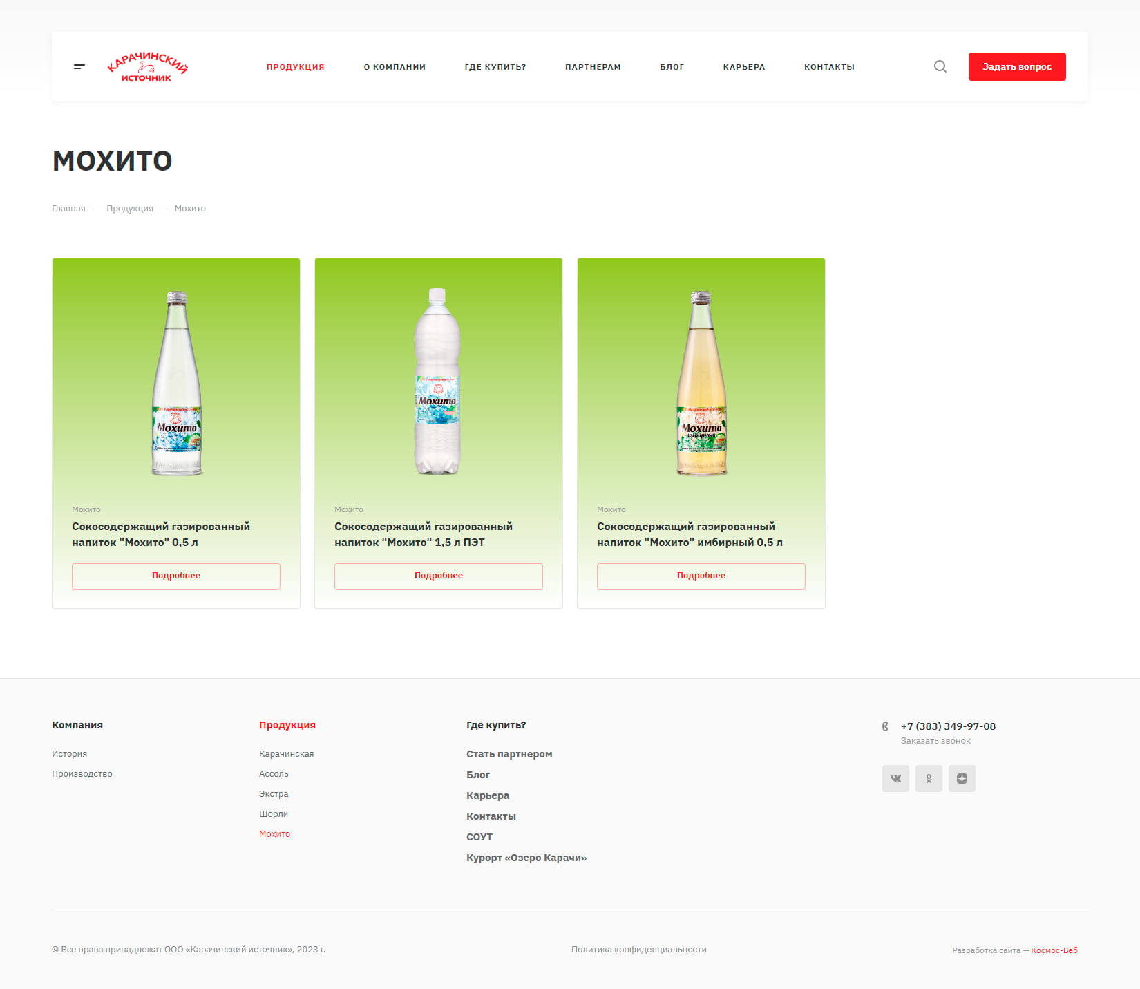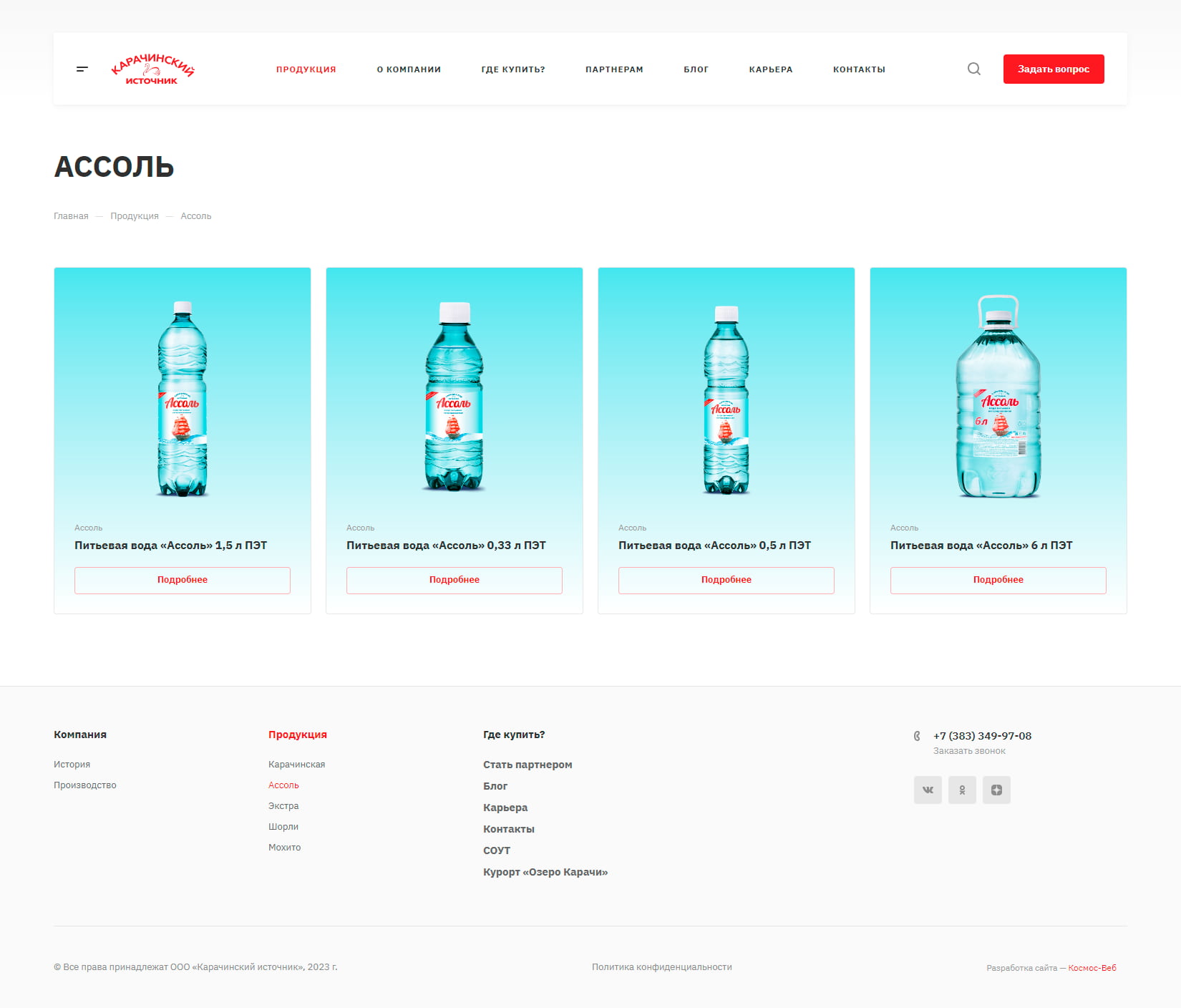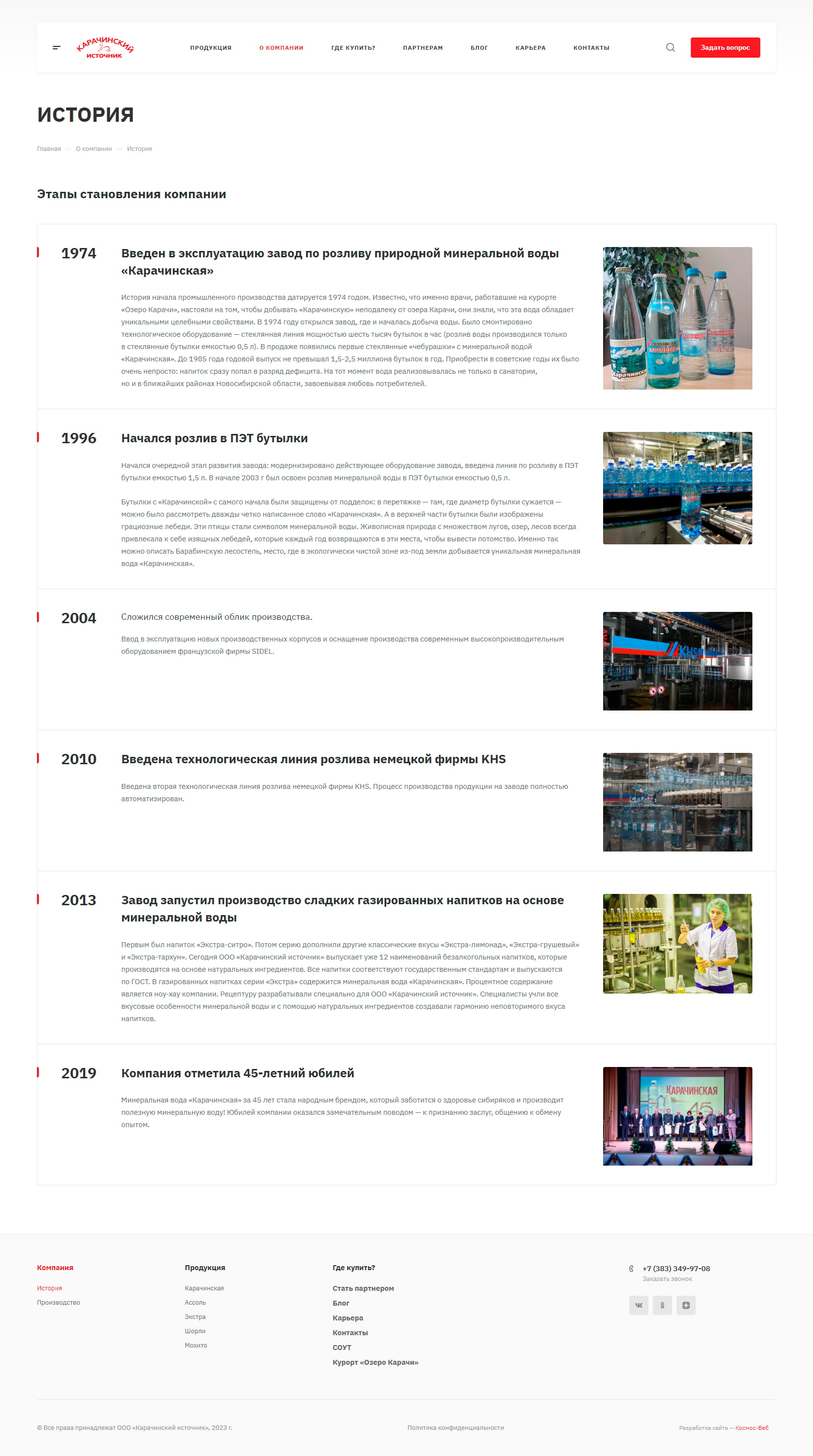The timeline and other resources were limited, so this time we couldn’t afford the luxury of custom design. However, we still needed to develop a beautiful website that would leave a lasting impression on users and effectively showcase the factory’s products, including the legendary 'Karachinskaya' mineral water.