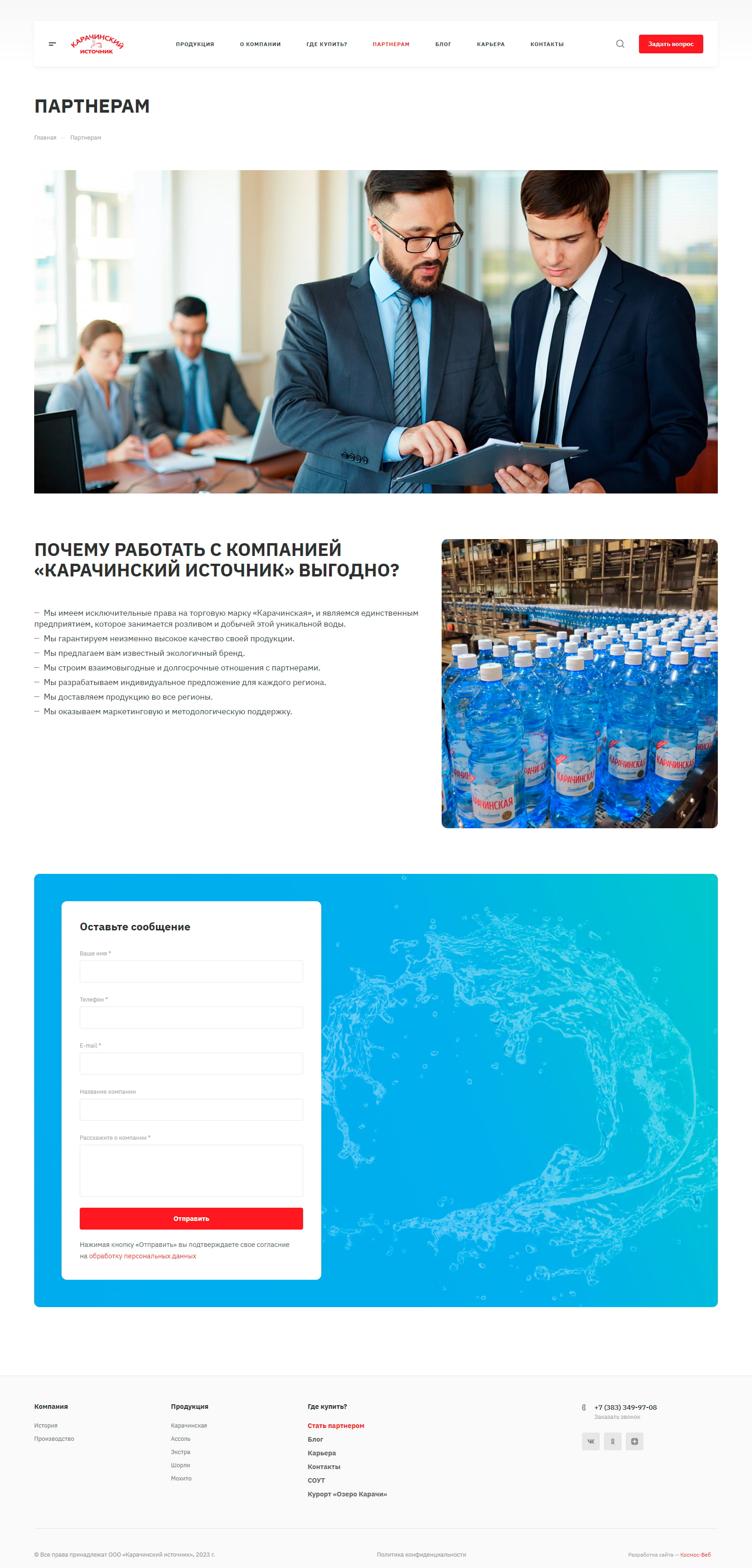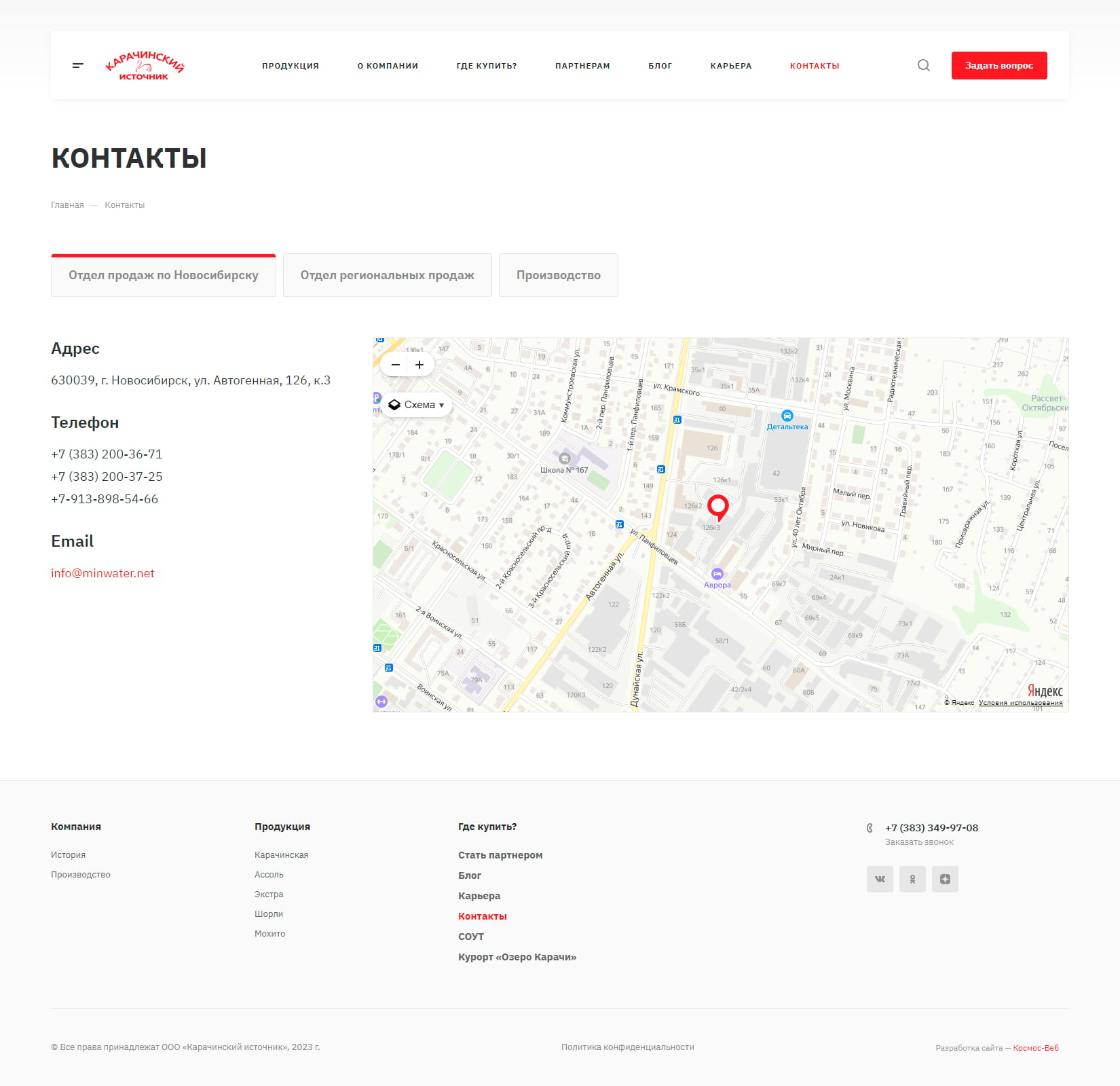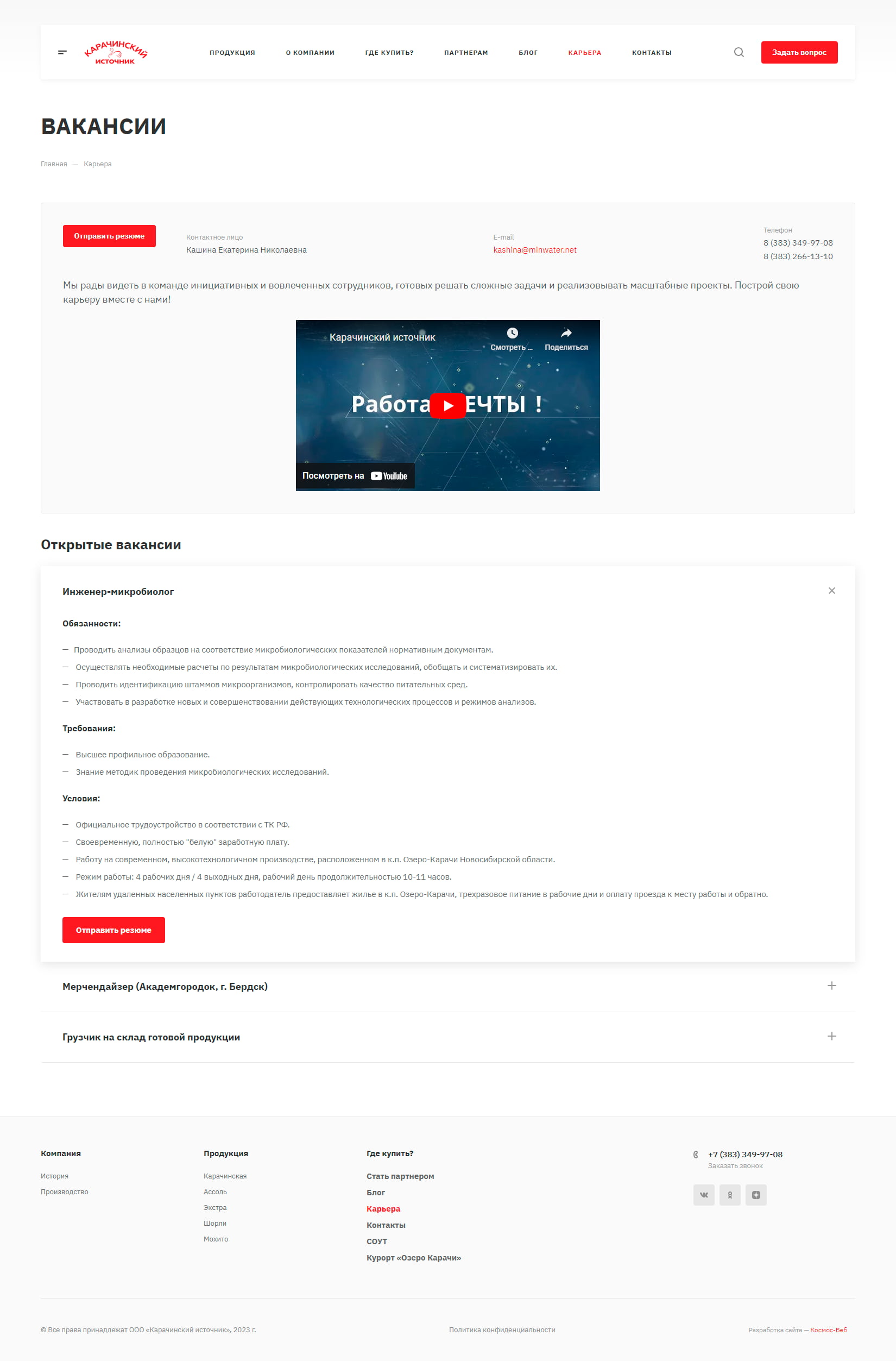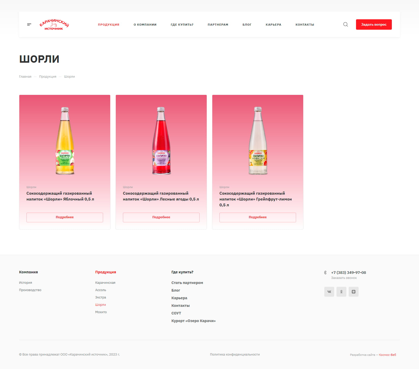 The timeline and other resources were limited, so this time we couldn’t afford the luxury of custom design. However, we still needed to develop a beautiful website that would leave a lasting impression on users and effectively showcase the factory’s products, including the legendary 'Karachinskaya' mineral water.