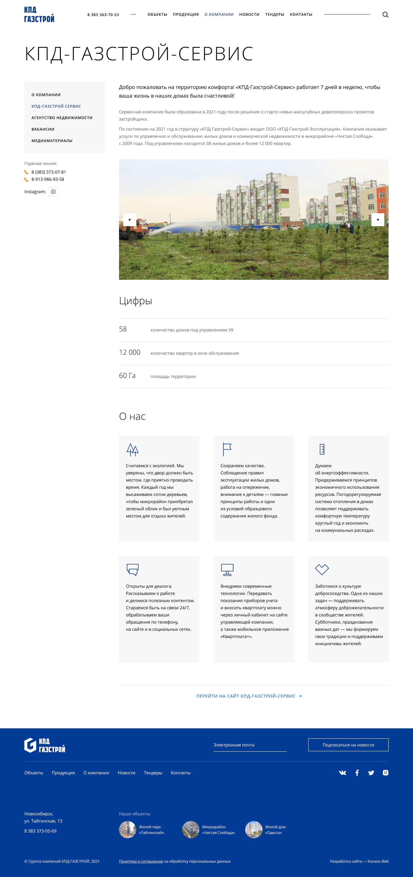 Our partnership with KPD-Gazstroi is ongoing. We’ve integrated Bitrix24 into the client’s business, developed websites for the Taiginsky Park, Chistaya Sloboda and Okolitsa residential districts, and are now engaged in new client projects.
