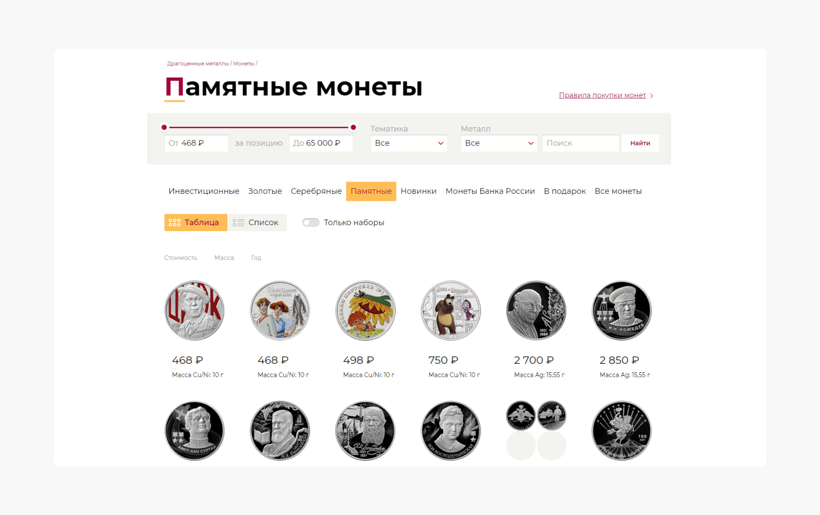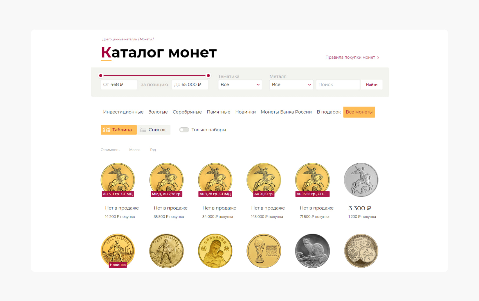 The main goal was to bring the website pages to positions where they could compete with large online stores. From an SEO perspective, the key challenge was that individual coins on lanta.ru were implemented via pop-ups. This approach puts the website at a disadvantage compared to specialized platforms that feature individual product pages for each coin.