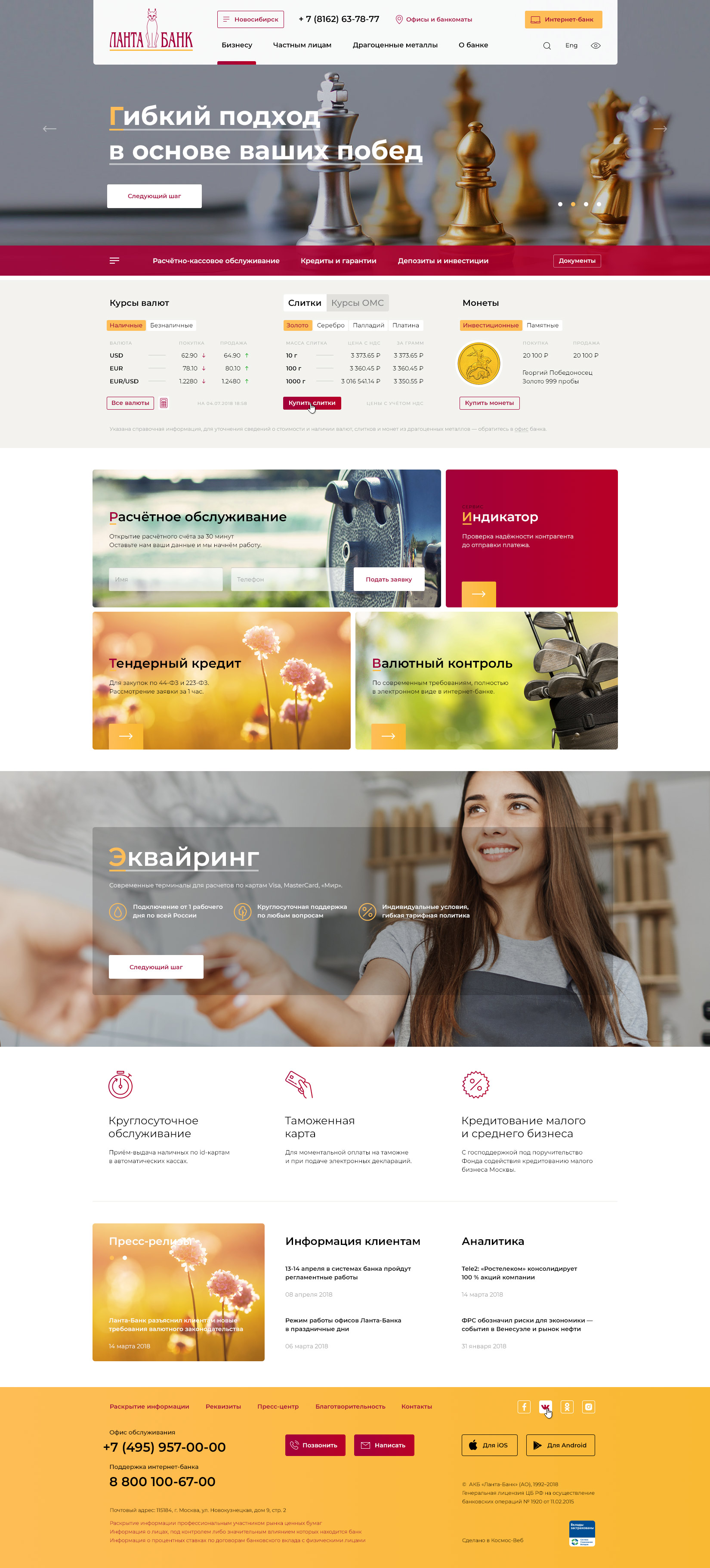 On the main page, much attention is paid to the currencies and metals quotes, current value of the coins — these are the key indicators that interest the bank’s clients.