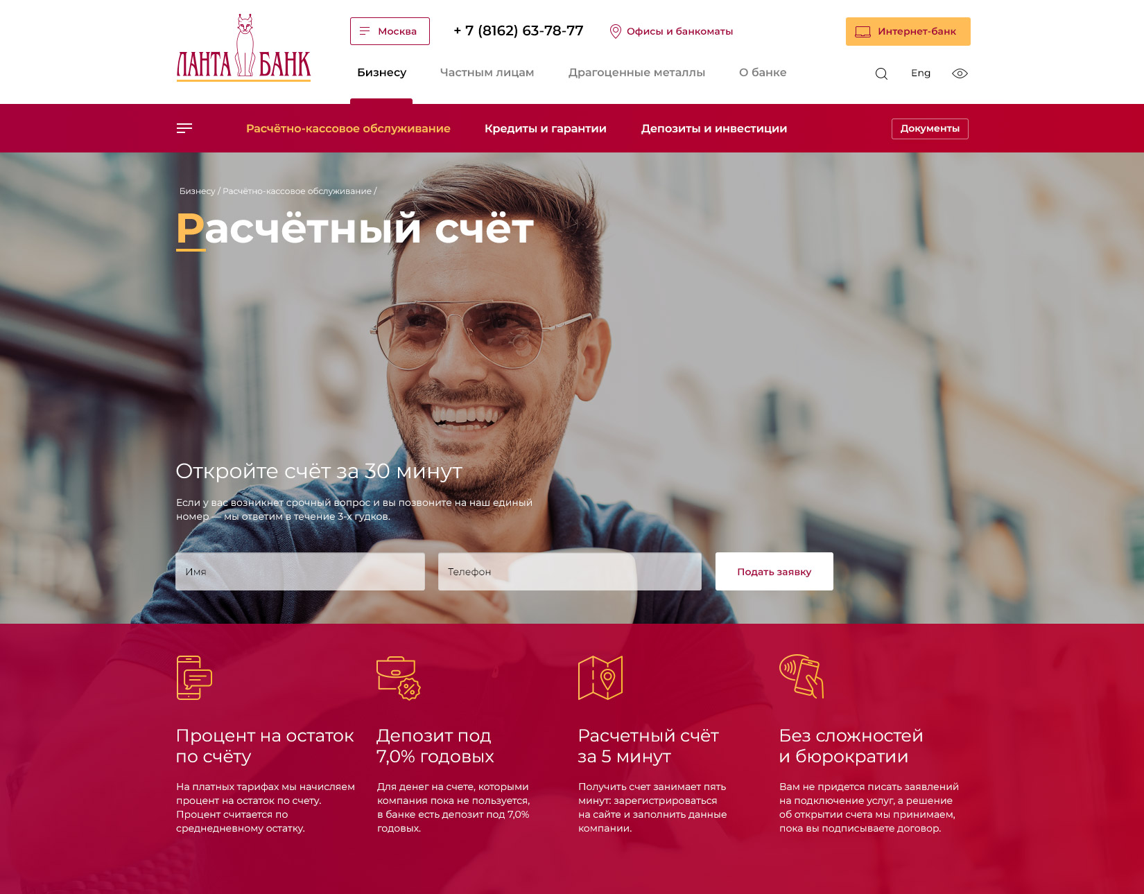 Lanta Bank cloud server is customized for the specific tasks. All organs of the website are distributed on different data drives: database, operating system, website files, backups, and swap — this allows to simultaneously process both internal and external queries of varying complexity. Modern query processing modules are used: PHP7. 3, Apache mode in FastCGI, Maria 10.3 database handler, and Docker for running databases in all versions of MySQL and MariaDB. A hardware solution is used to protect against DDoS attacks.