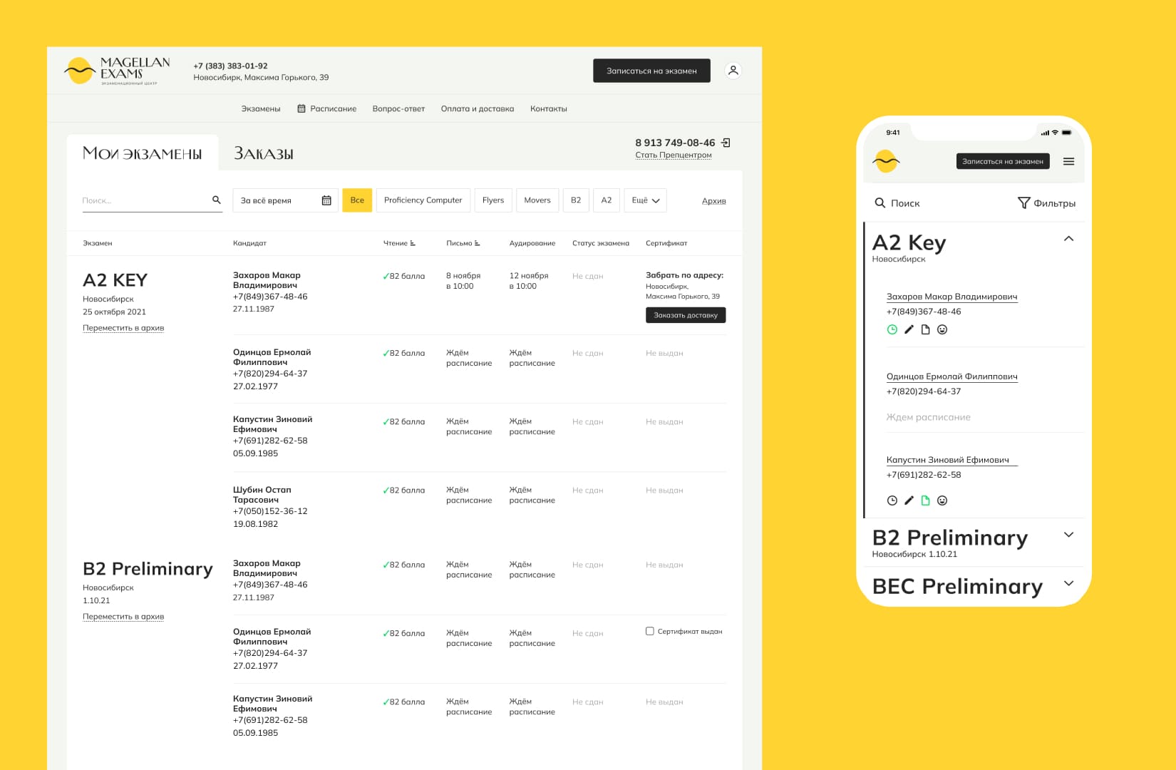 The previous version of the website is very outdated in terms of design. Another task that our developers faced was to automate the process of ordering exams for language schools.