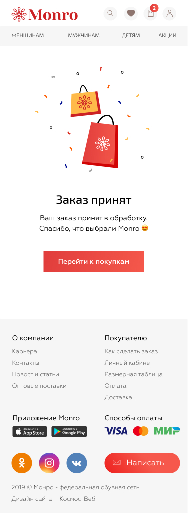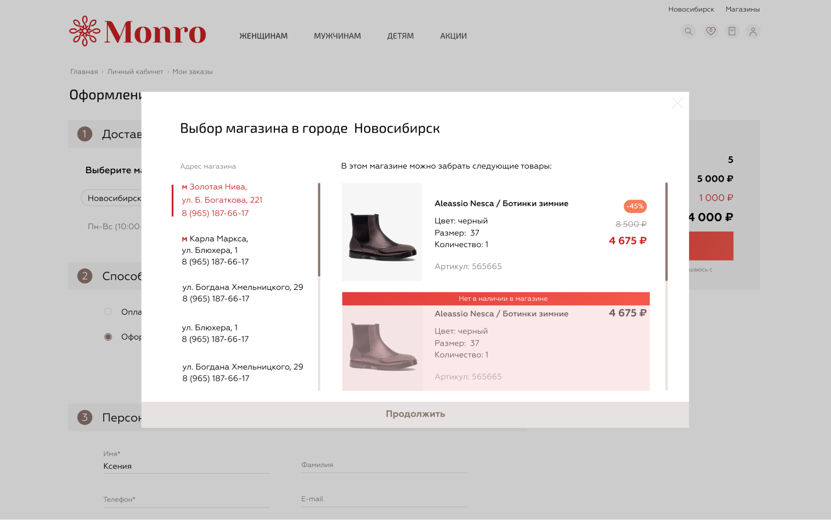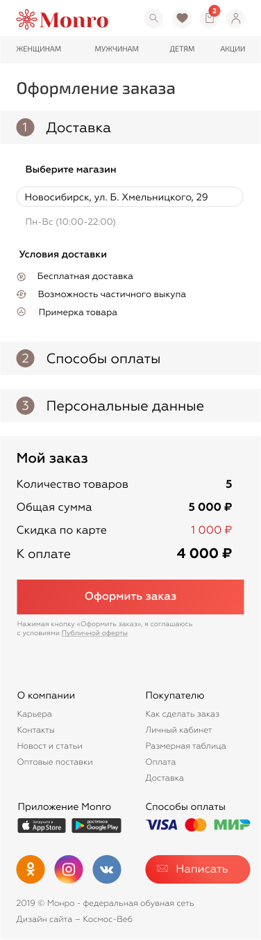 Most customers access the website via smartphone, so the mobile version was designed to be as convenient and functional as a full app. We removed unnecessary elements and placed all checkout steps on a single page. Navigation between sections of the personal account was simplified.