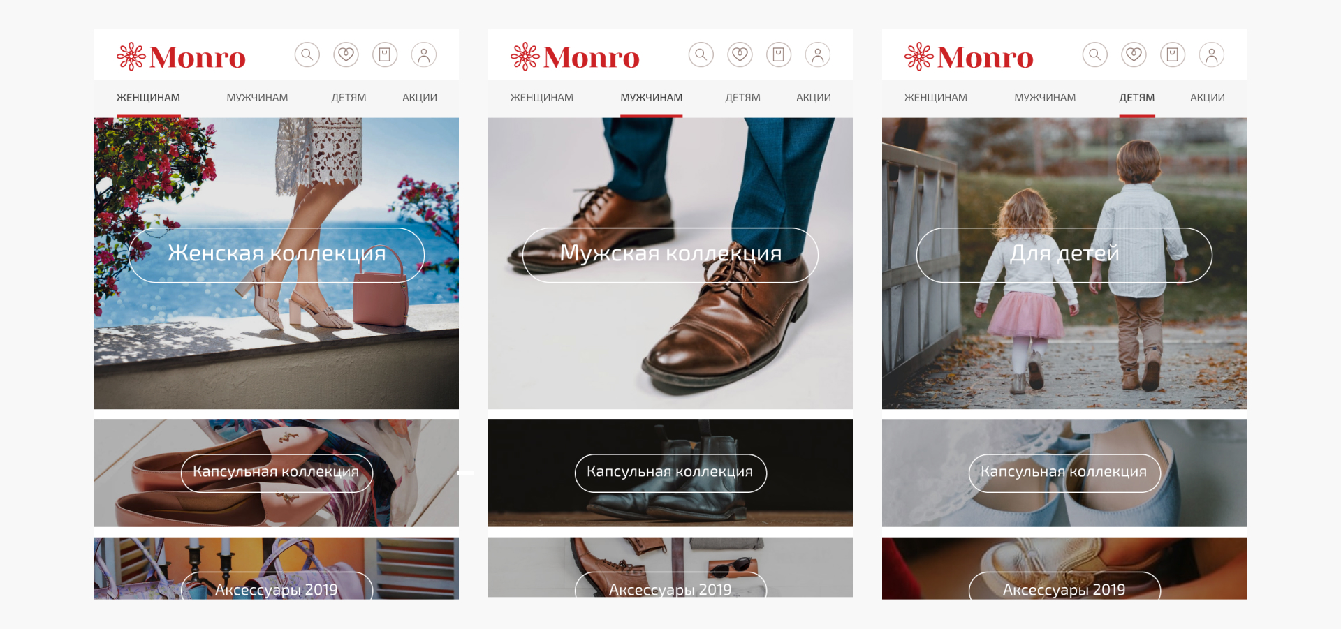 The client intended to use this functionality in advertising campaigns. For example, if a woman lands on the website from a promo, she sees the women’s section by default — and similarly for men and children.