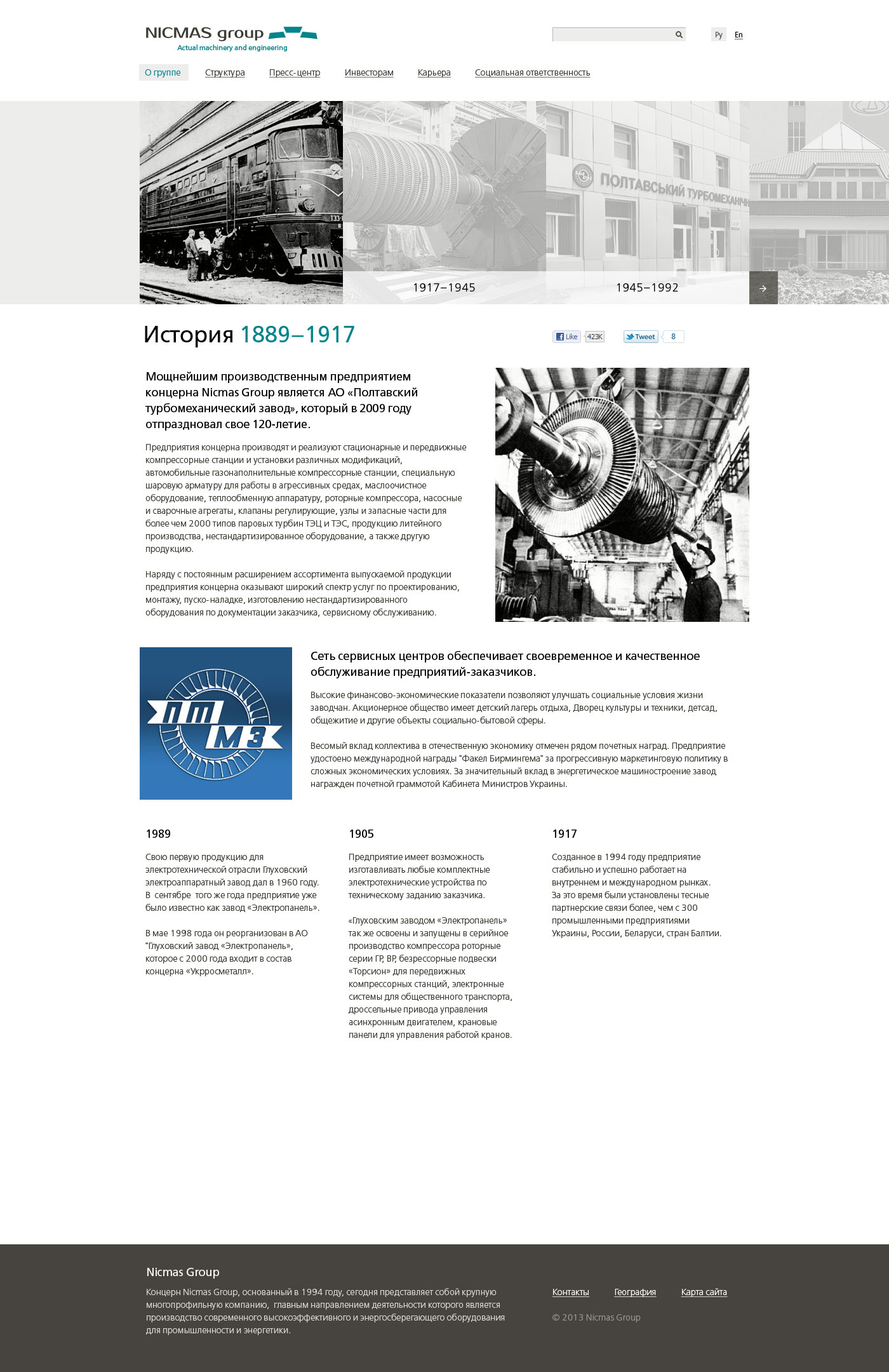 We also created design sketches for several secondary pages of the Nicmas Group website and for one of the group’s divisions — PTMZ.