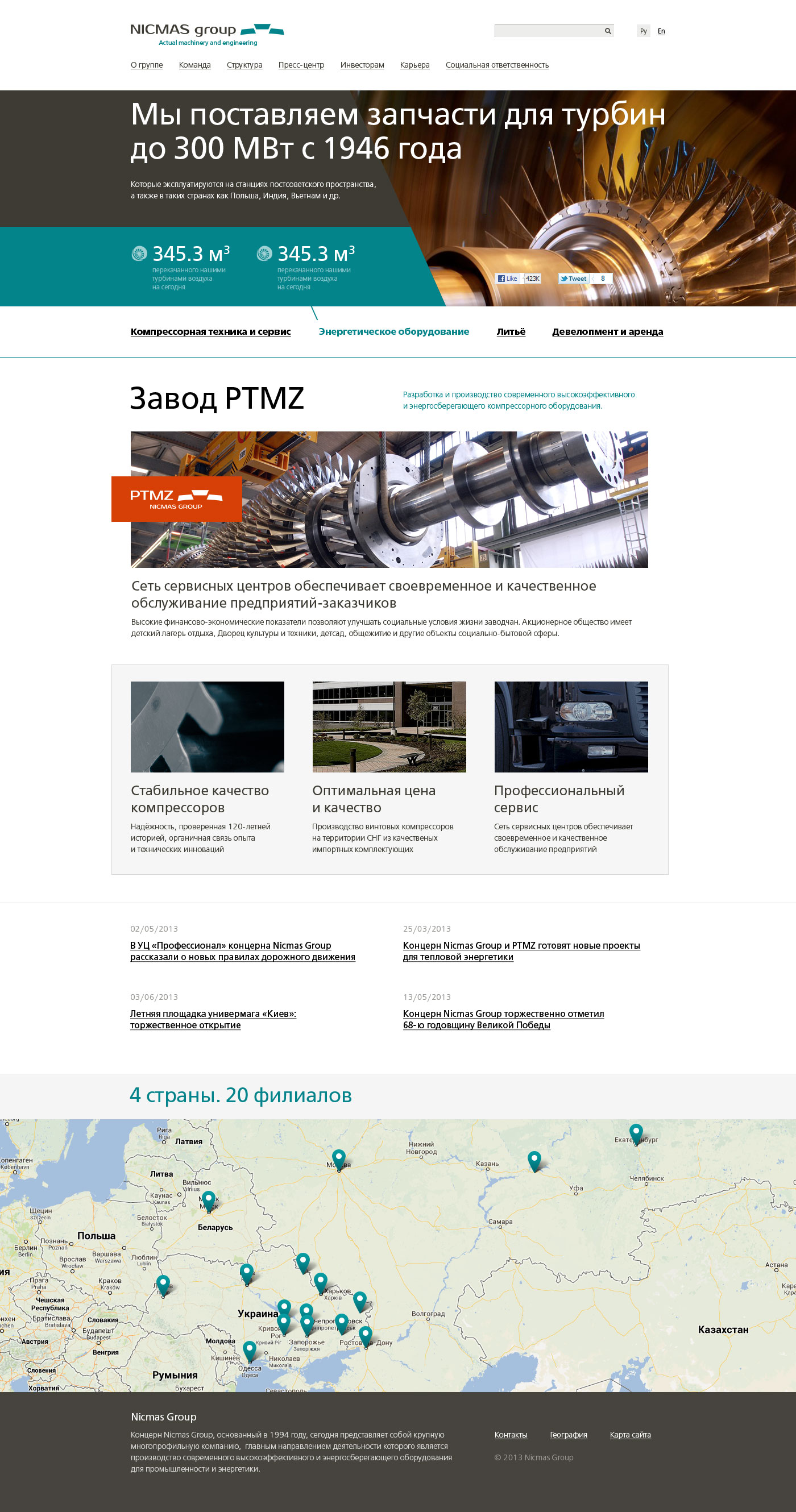 We also created design sketches for several secondary pages of the Nicmas Group website and for one of the group’s divisions — PTMZ.
