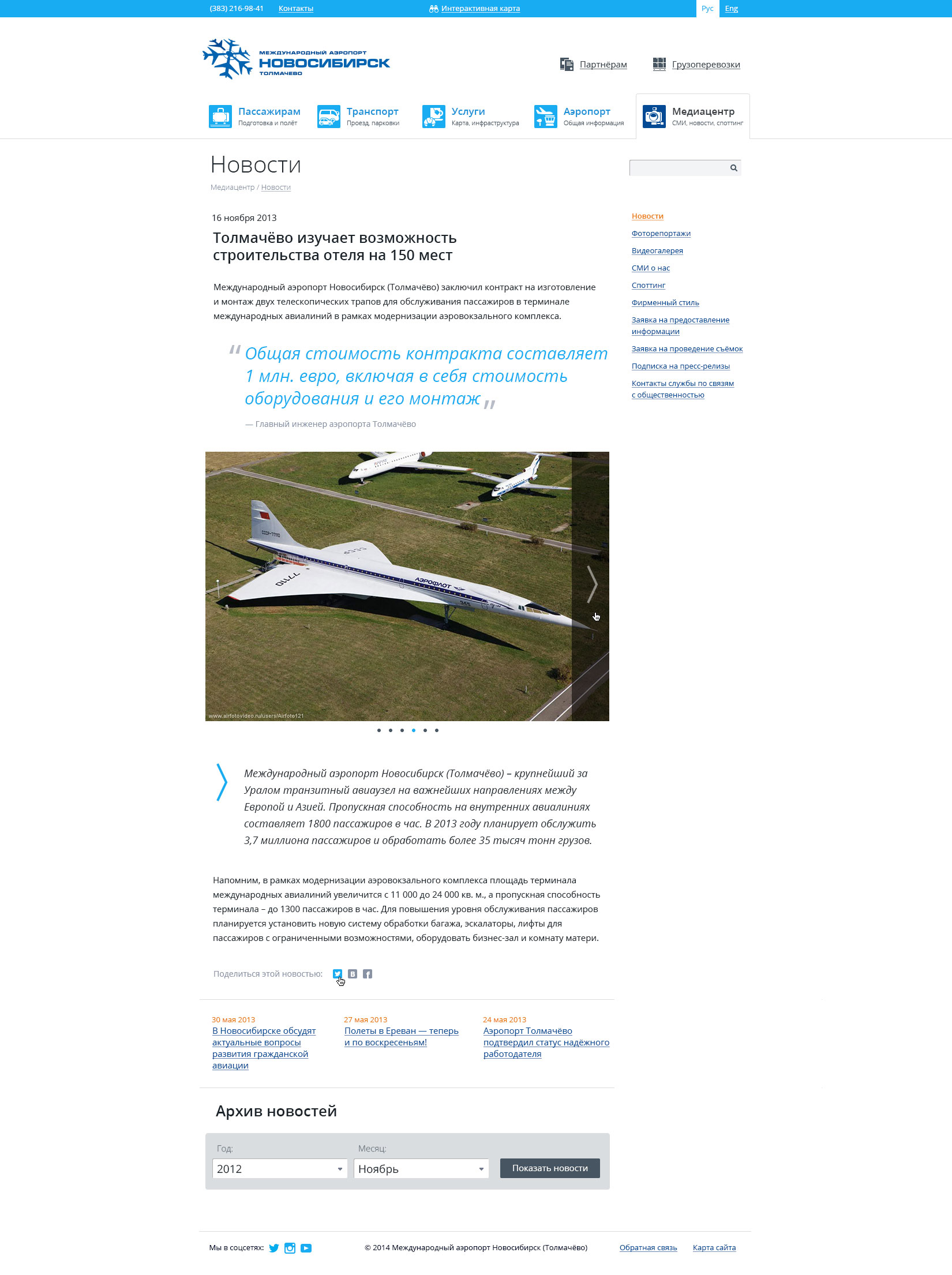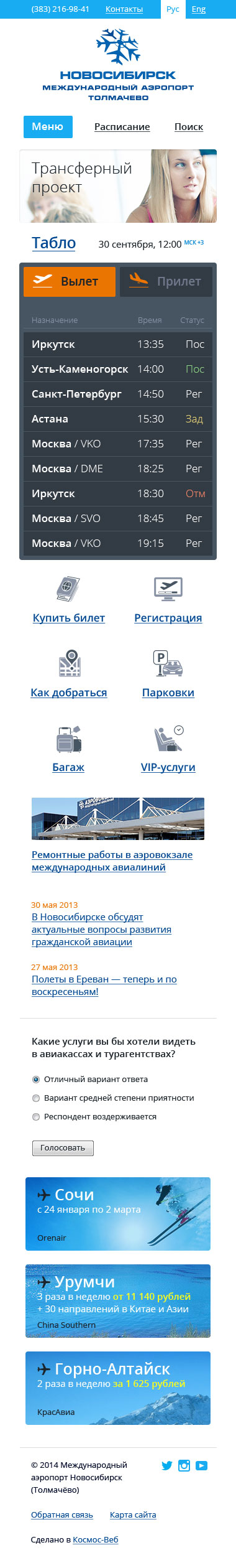 Together with the client, we developed a strategy for adapting the website to other airports managed by Novaport. Gradually, by scaling the tolmachevo.ru project, we launched websites for 17 additional regional airports and for Novaport’s corporate site itself.