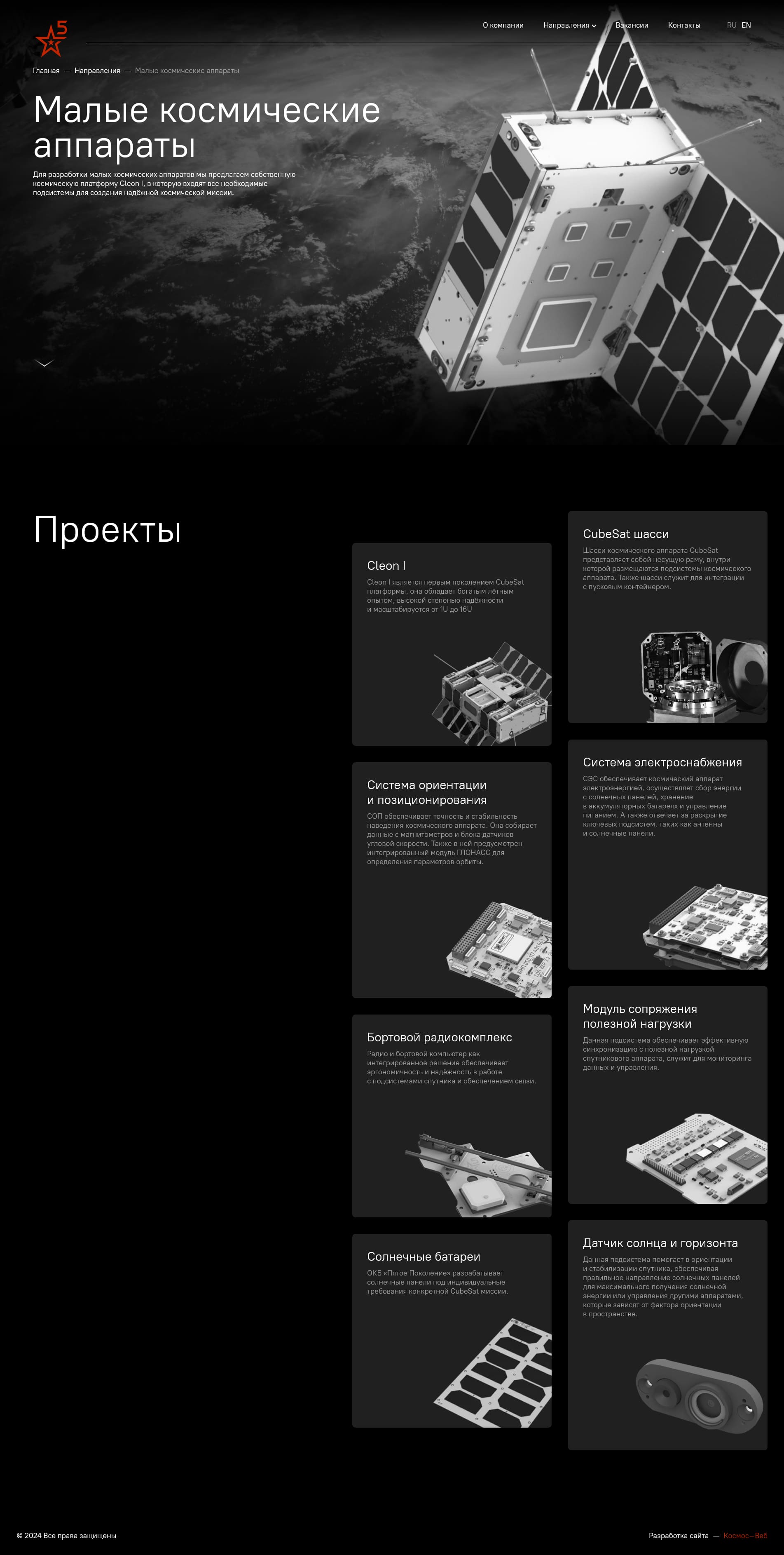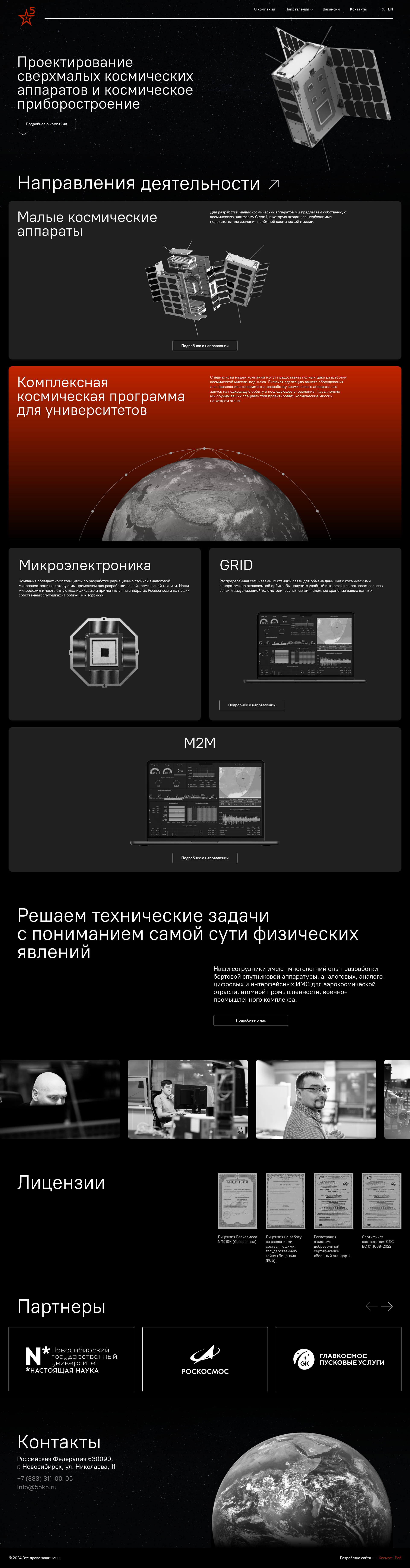 It is associated with deep darkness and bright stars, so we chose saturated dark shades for the website and placed accents in the company’s bright corporate colors.