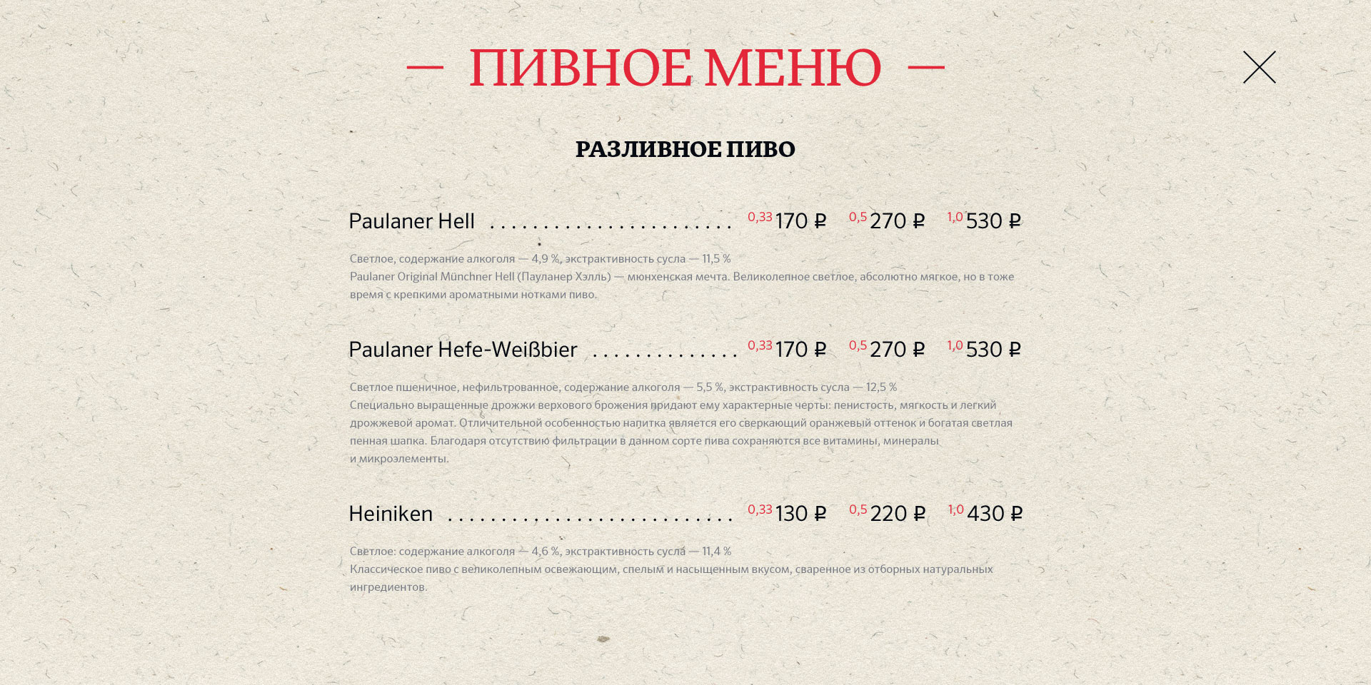 Menu items open in full-screen view when clicked, making it easy and convenient to explore the offerings.