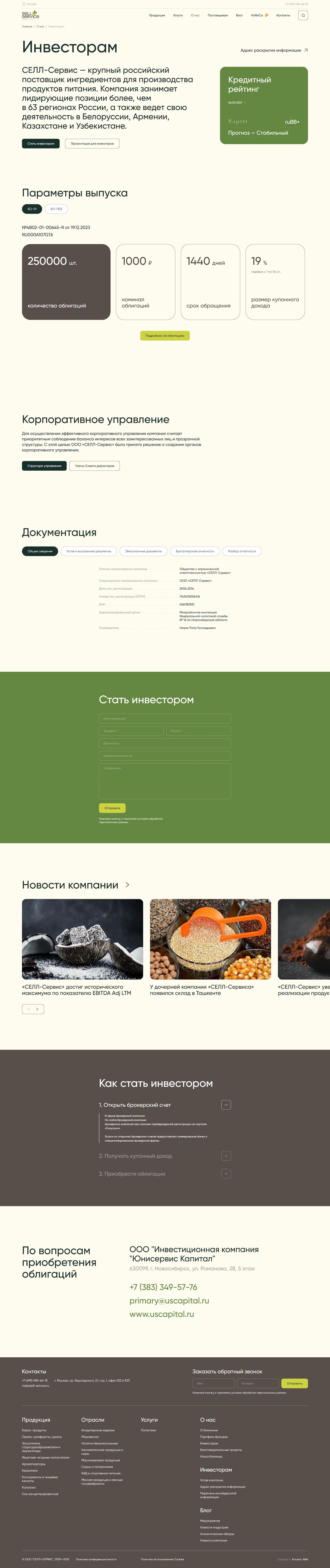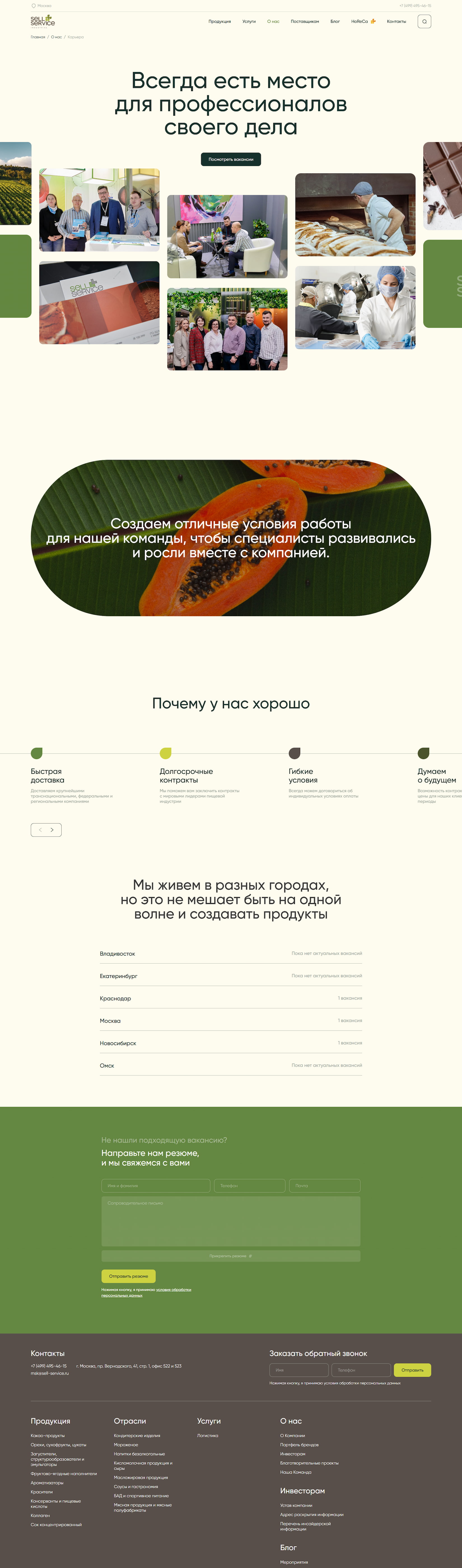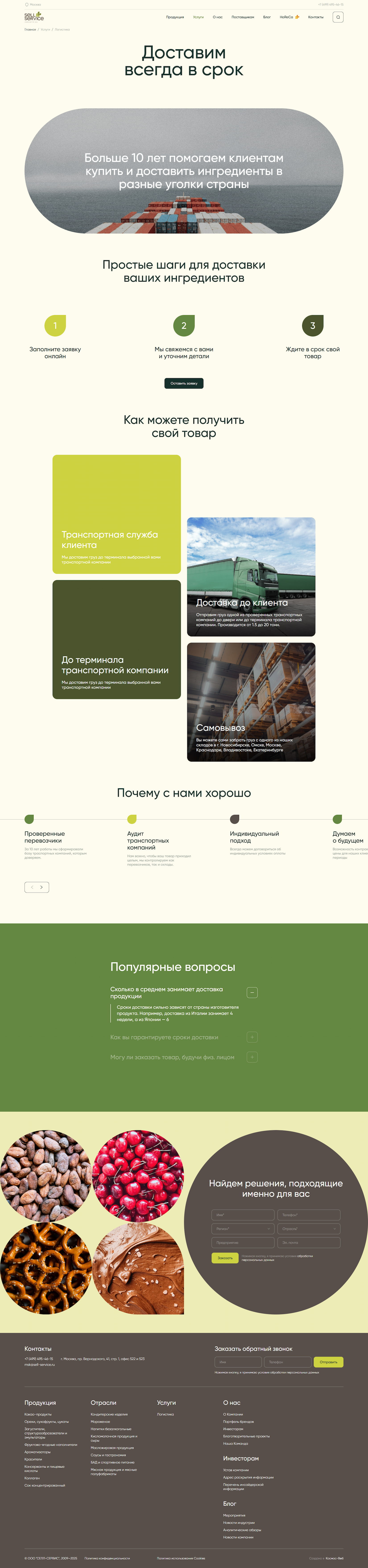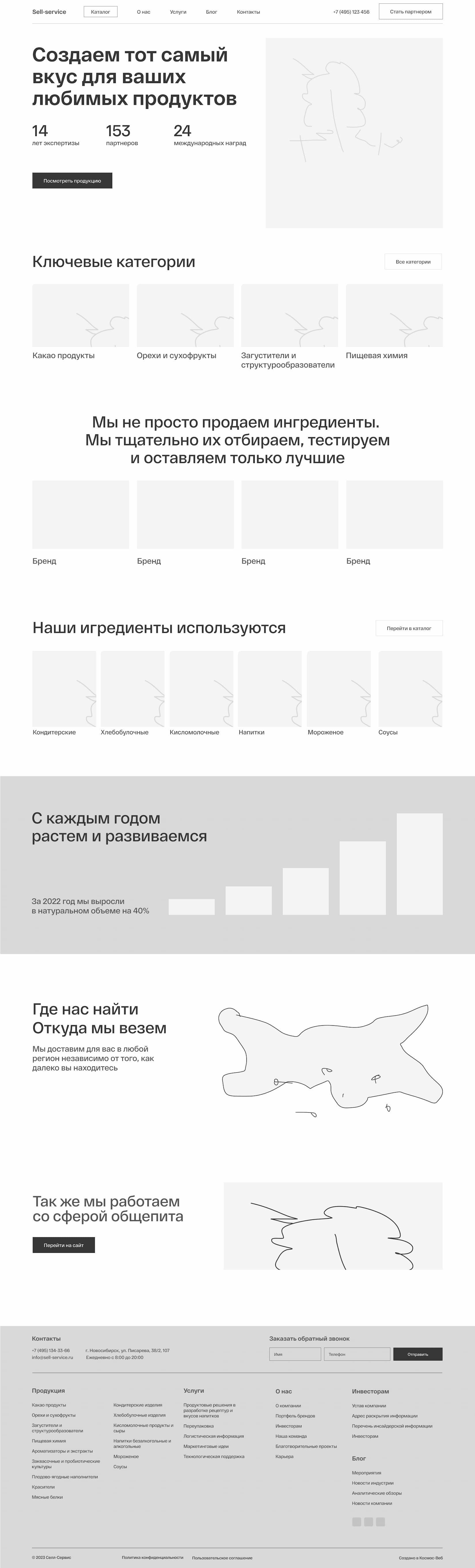 We conveyed Sell Service’s values on the website: openness, warmth, naturalness, responsiveness, and reliability. The company operates as a partner: Sell Service’s technologists develop recipes and help set up production processes.