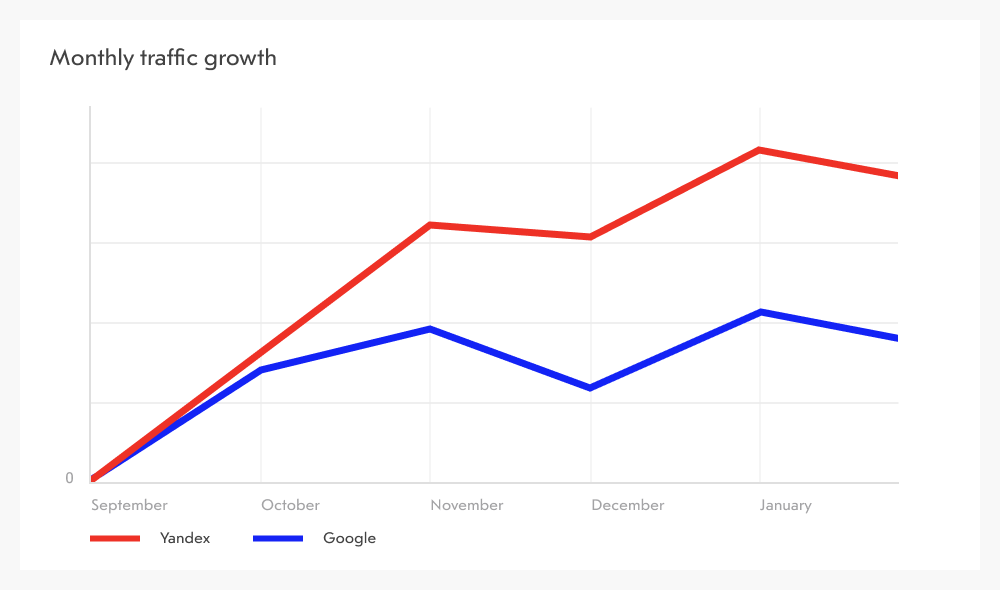 SEO takes time — at least 1–2 months. We couldn’t allow the client’s business to sit idle during this period, so we used ads in Yandex and Google as an interim source of leads.