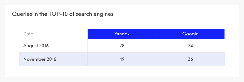 Basic optimization was carried out in parallel with development. We preserved existing search positions during the transition: all content was carefully migrated, and redirects were set up.