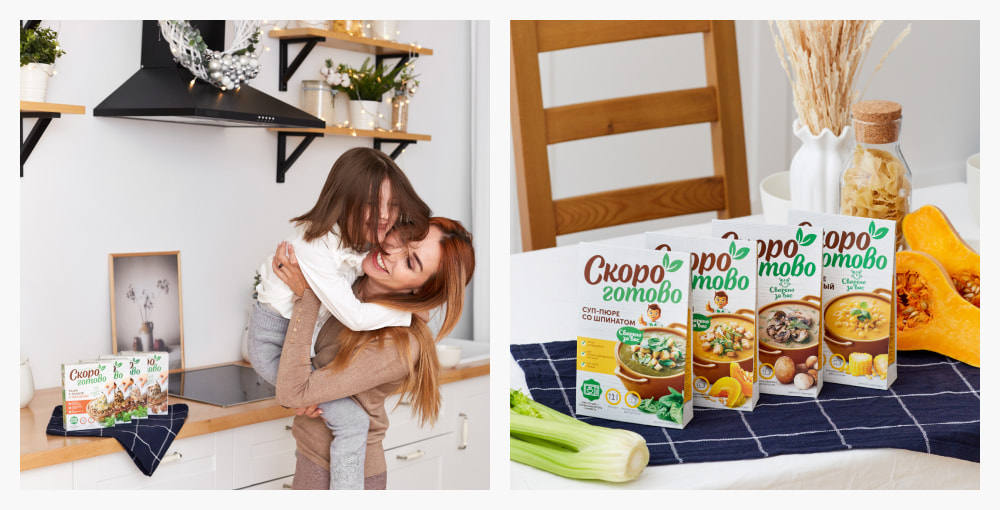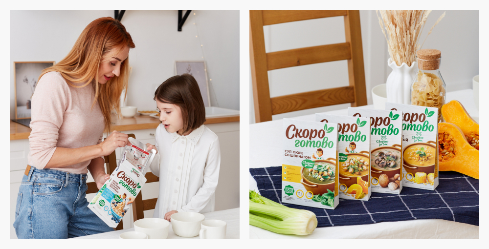 The brand 'Skoro Gotovo' specializes in healthy nutrition and ready meals in retort packages.
