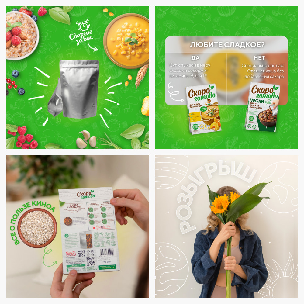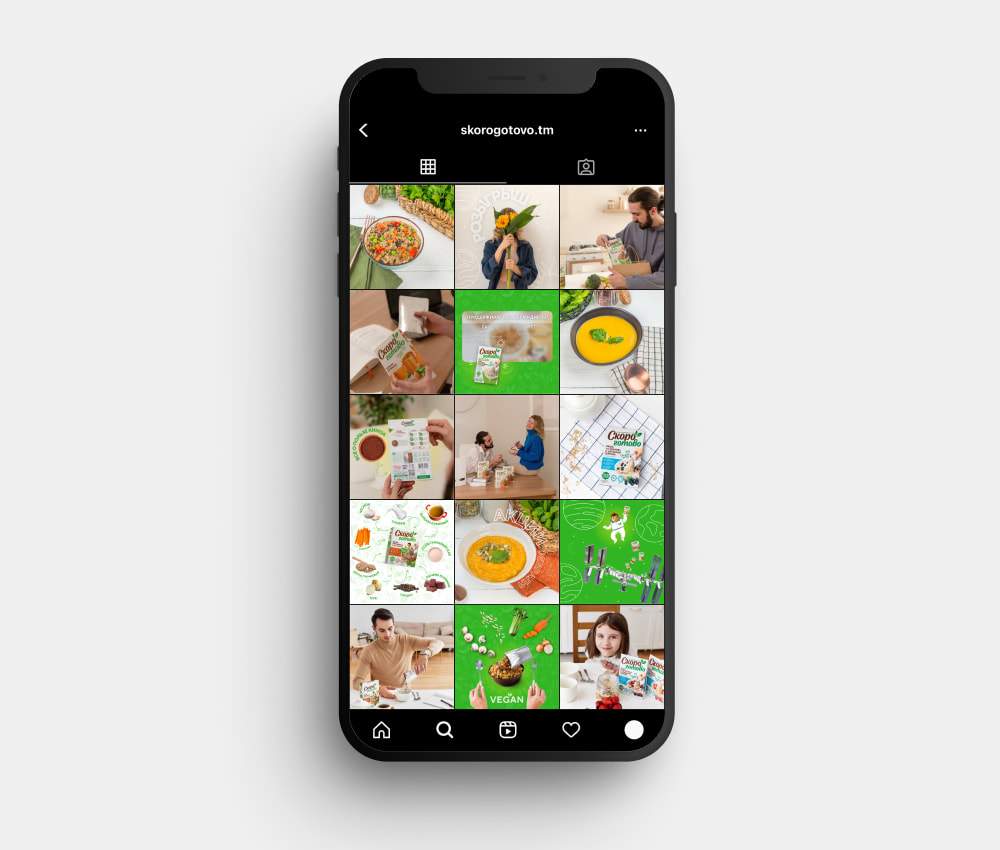 We have created a profile and prepared a content plan. We worked with both layouts and photos in stories and posts. The visuals in the feed are very diverse, while everything is designed in a single style.