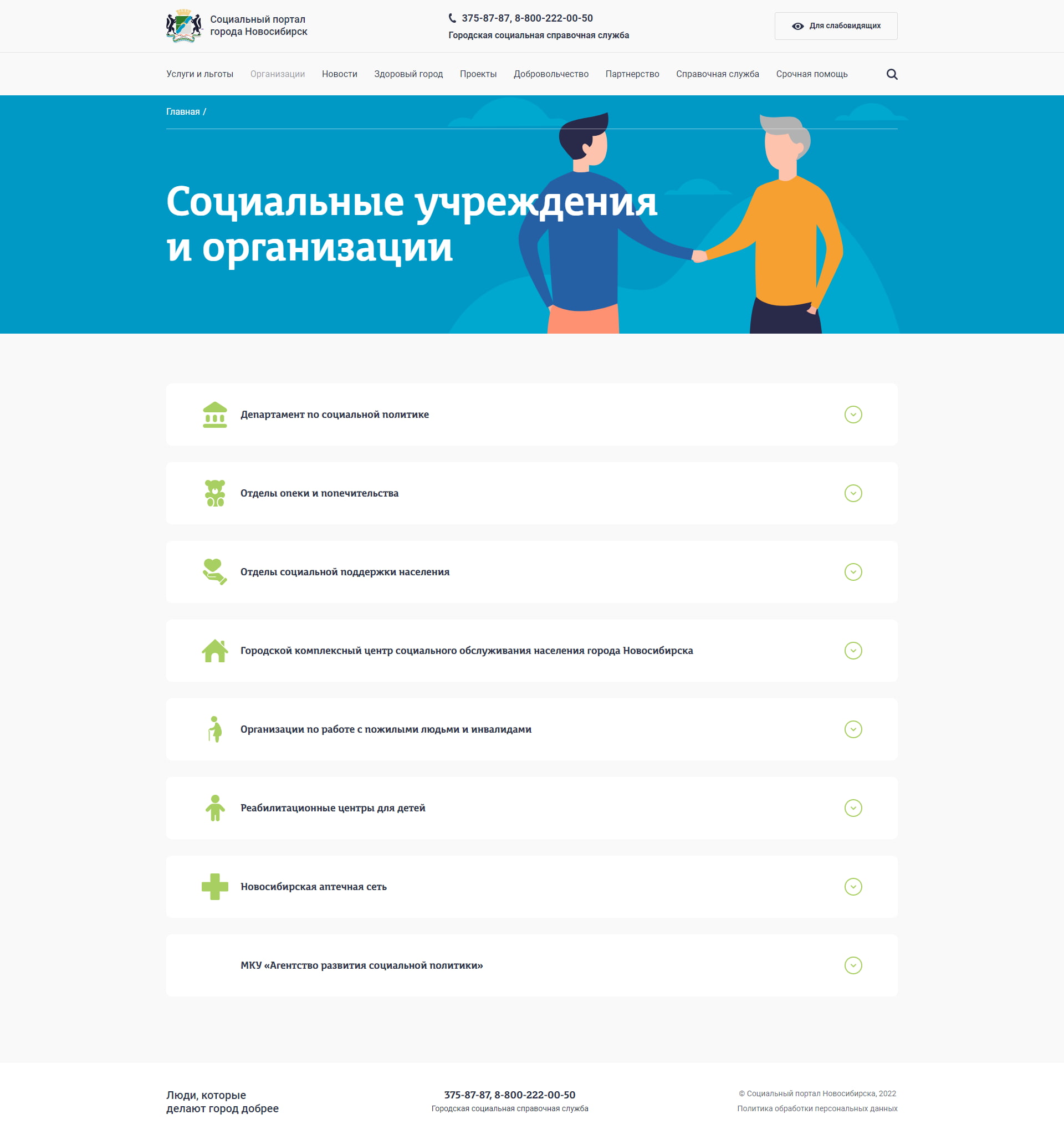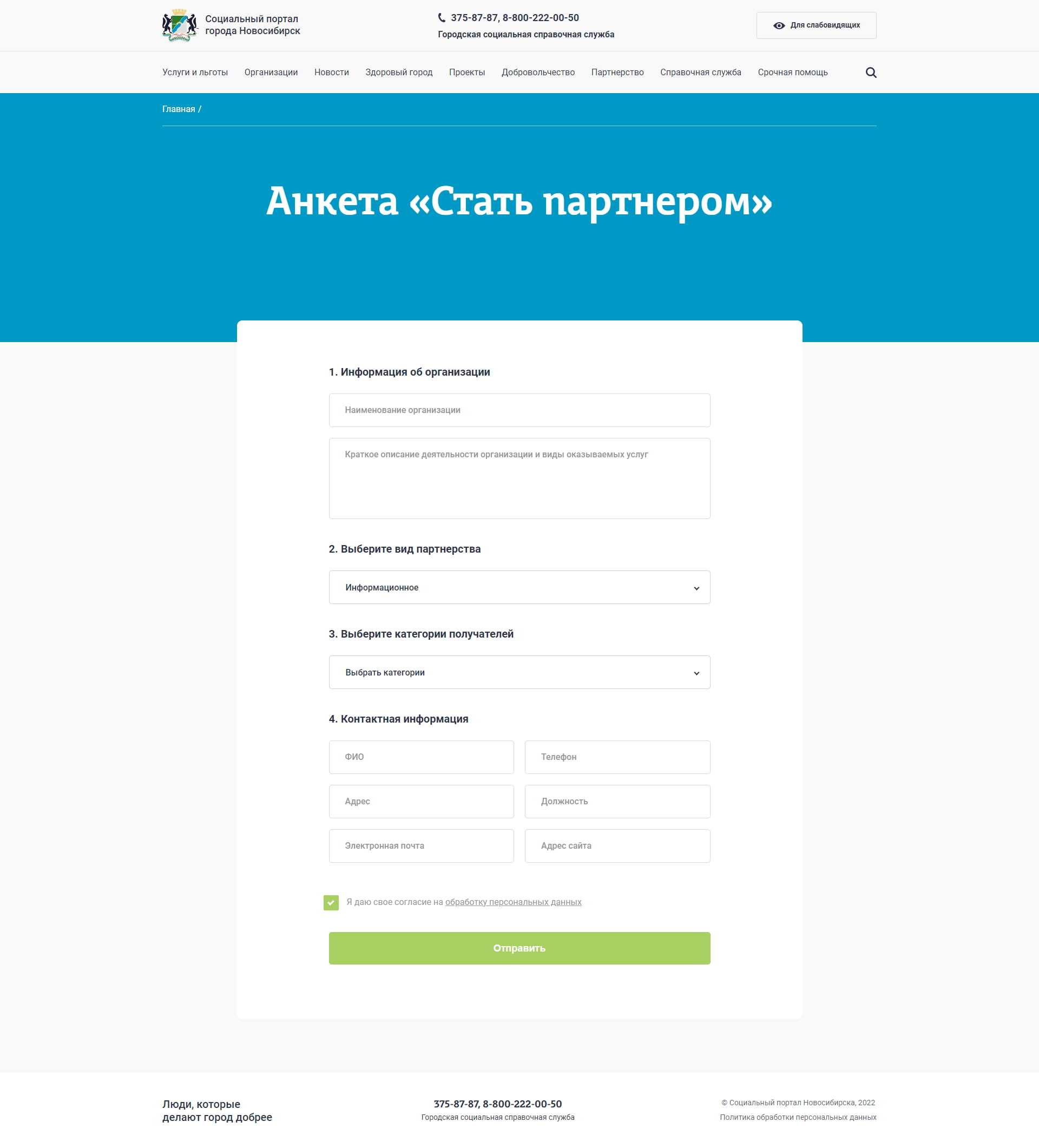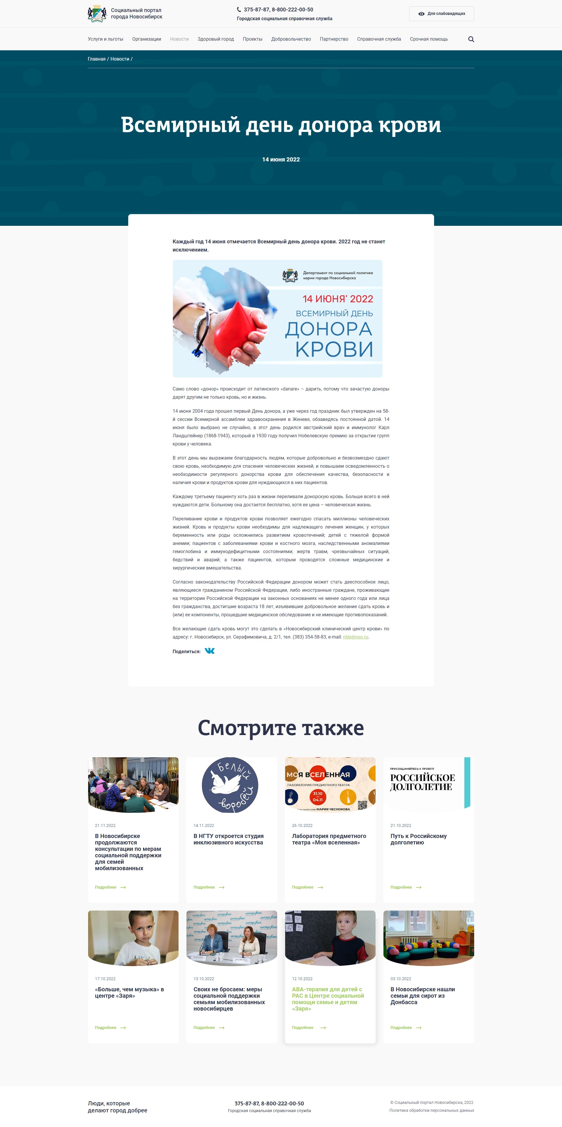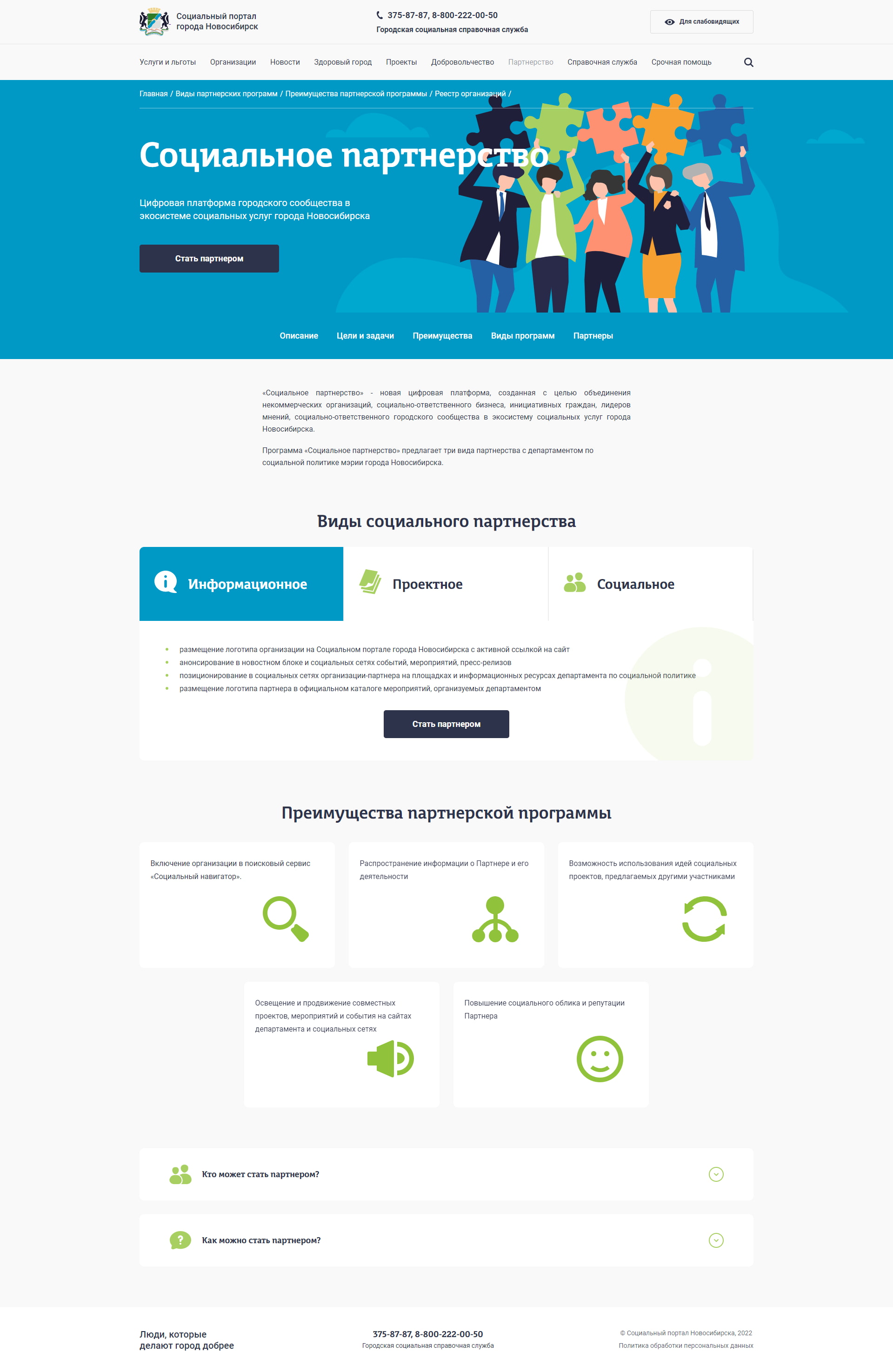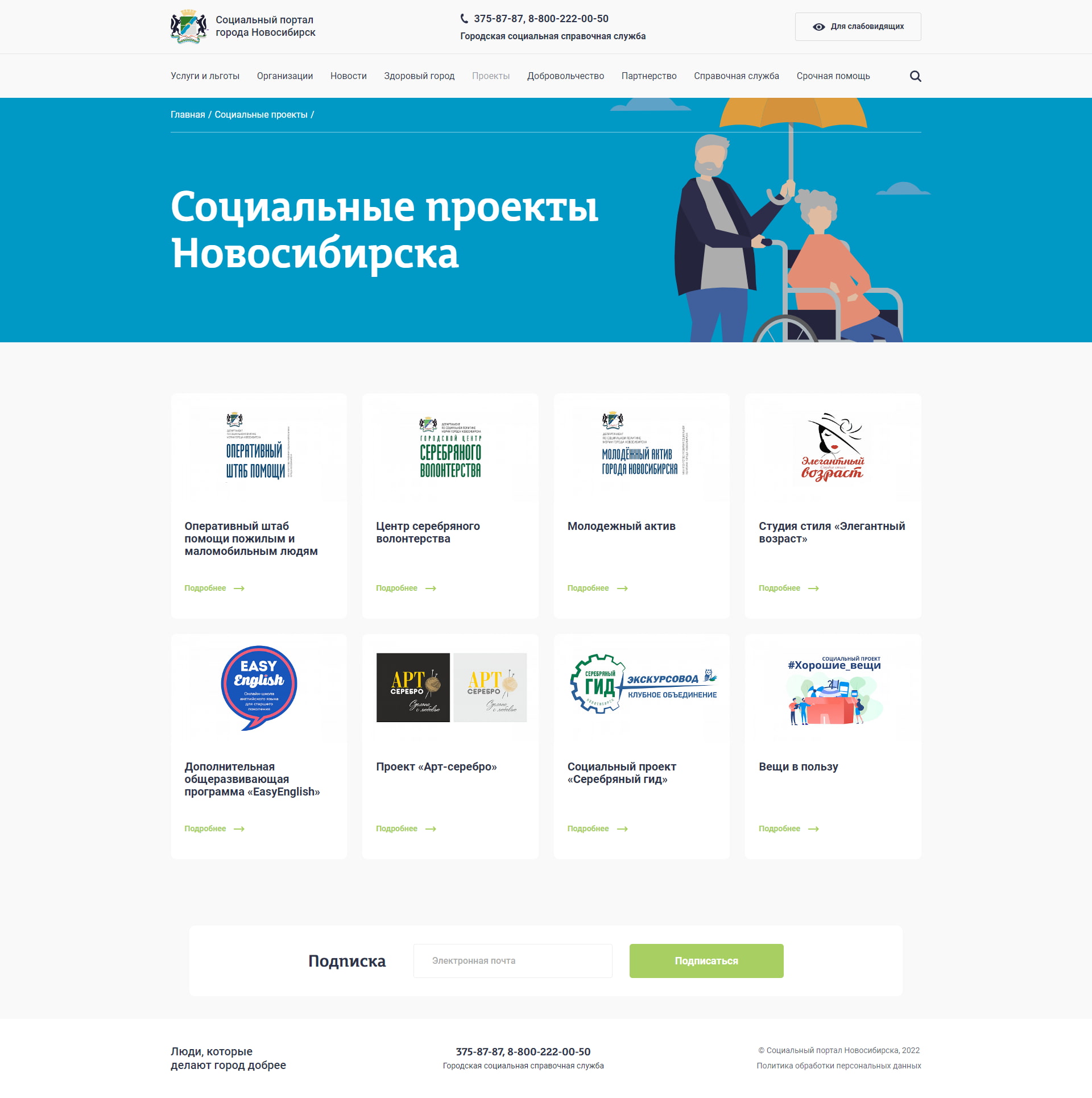 This system allowed us to display information on the website about all social projects currently active in Novosibirsk.