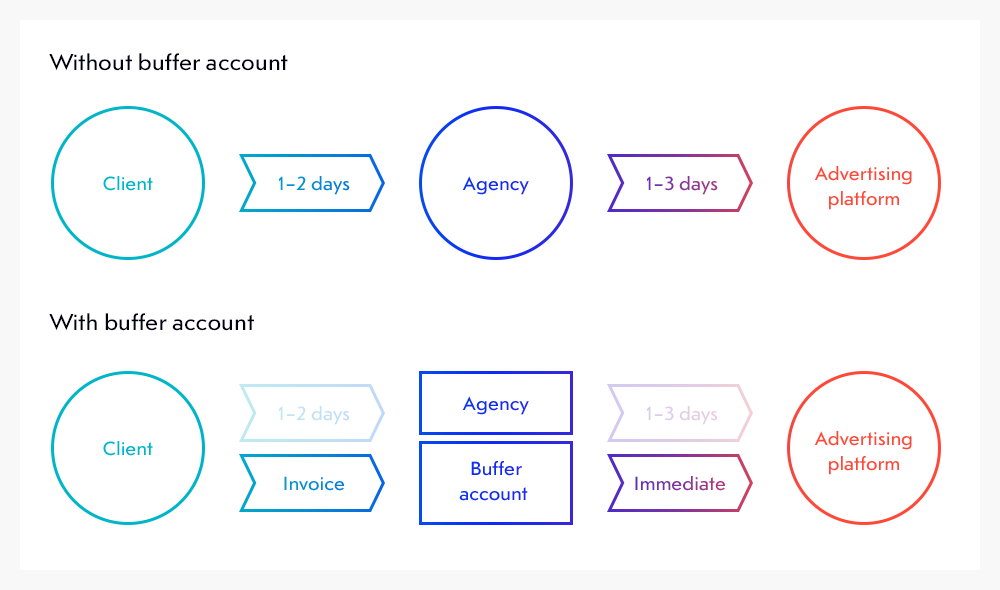We’ve updated the structure of the advertising campaign and introduced a «buffer account» to recharge account promptly.