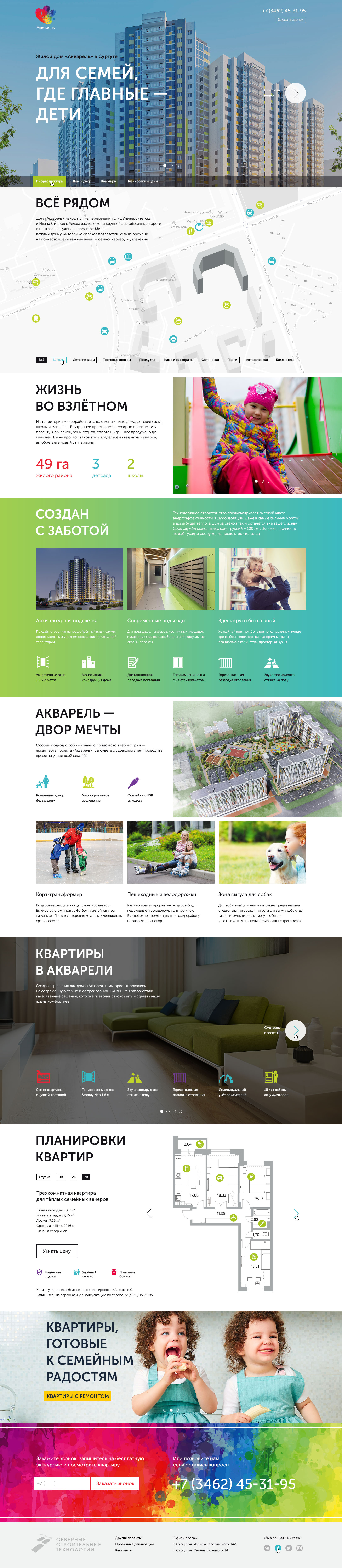 Each of these pages immerses the user in the world of a residential complex under construction or finished. Lots of details and memorable visuals.