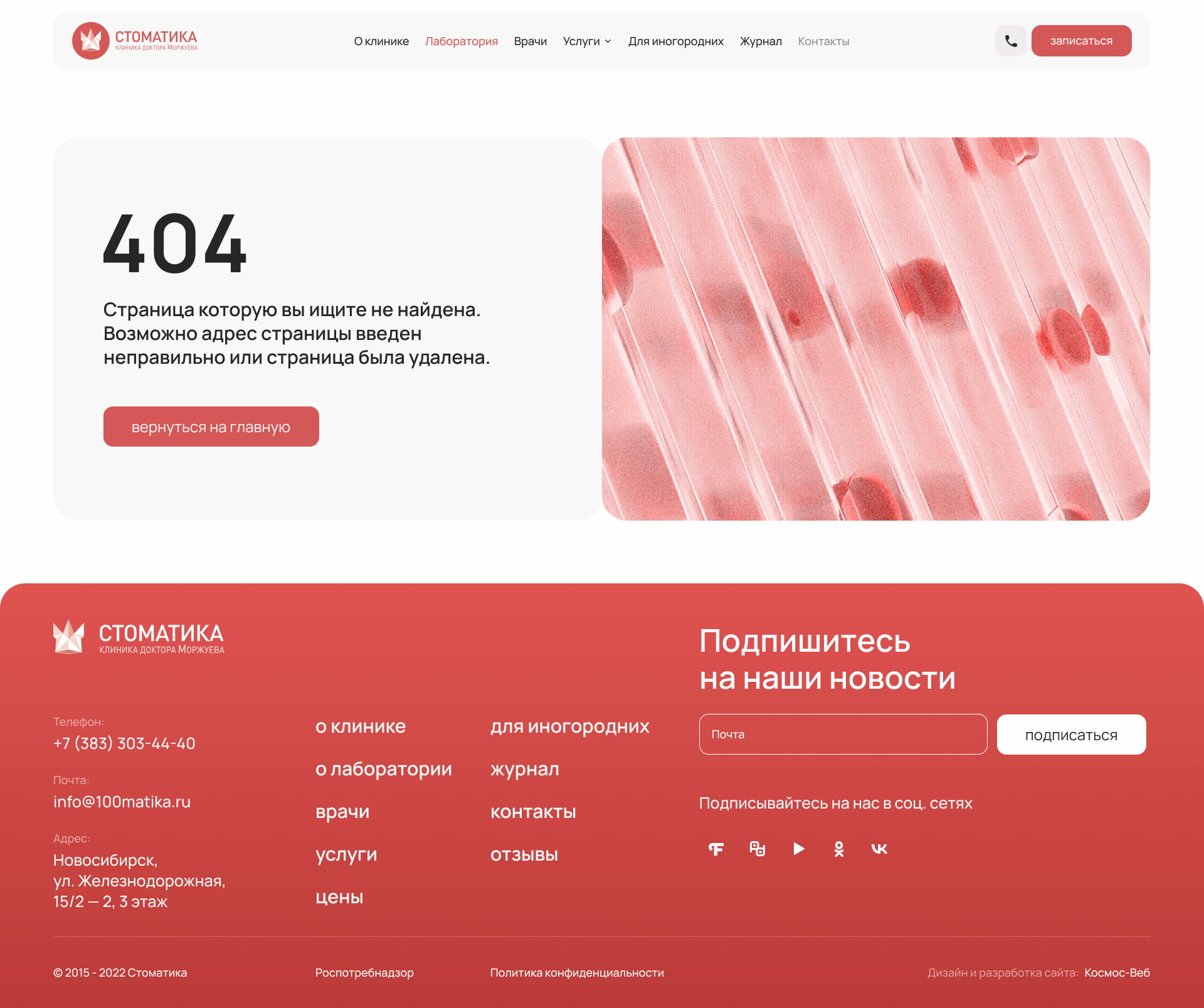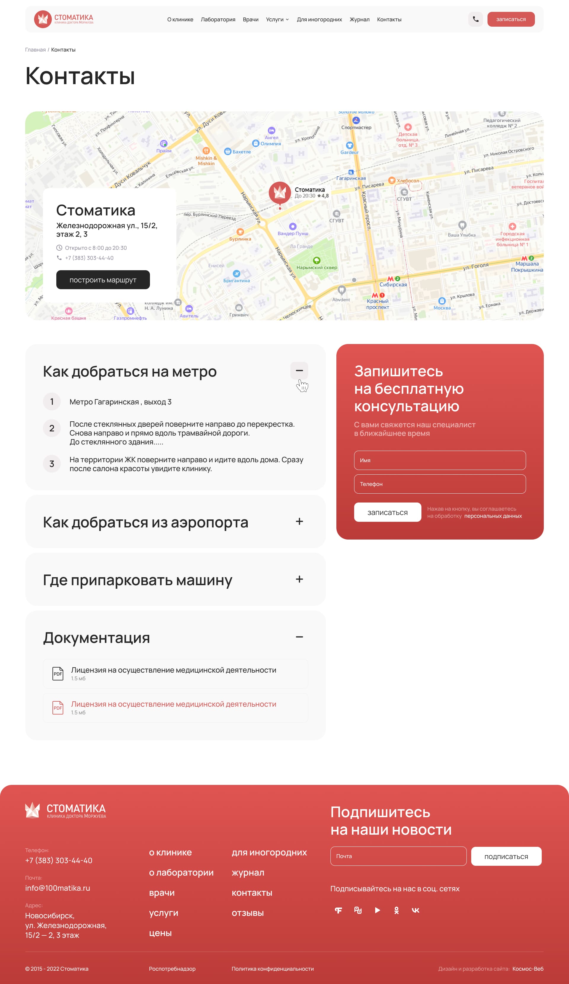 In 2023, the client contacted us with a wish to finalize the old website. By this time, important changes had taken place in the clinic, there was a clear growth — and the old website did not match the company at all. We recommended developing a new website because it was more cost-effective than upgrading the old one.