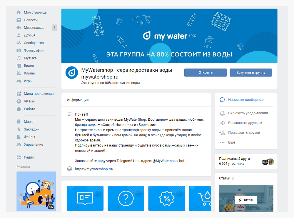 - VKontakte vk.com/mywatershop